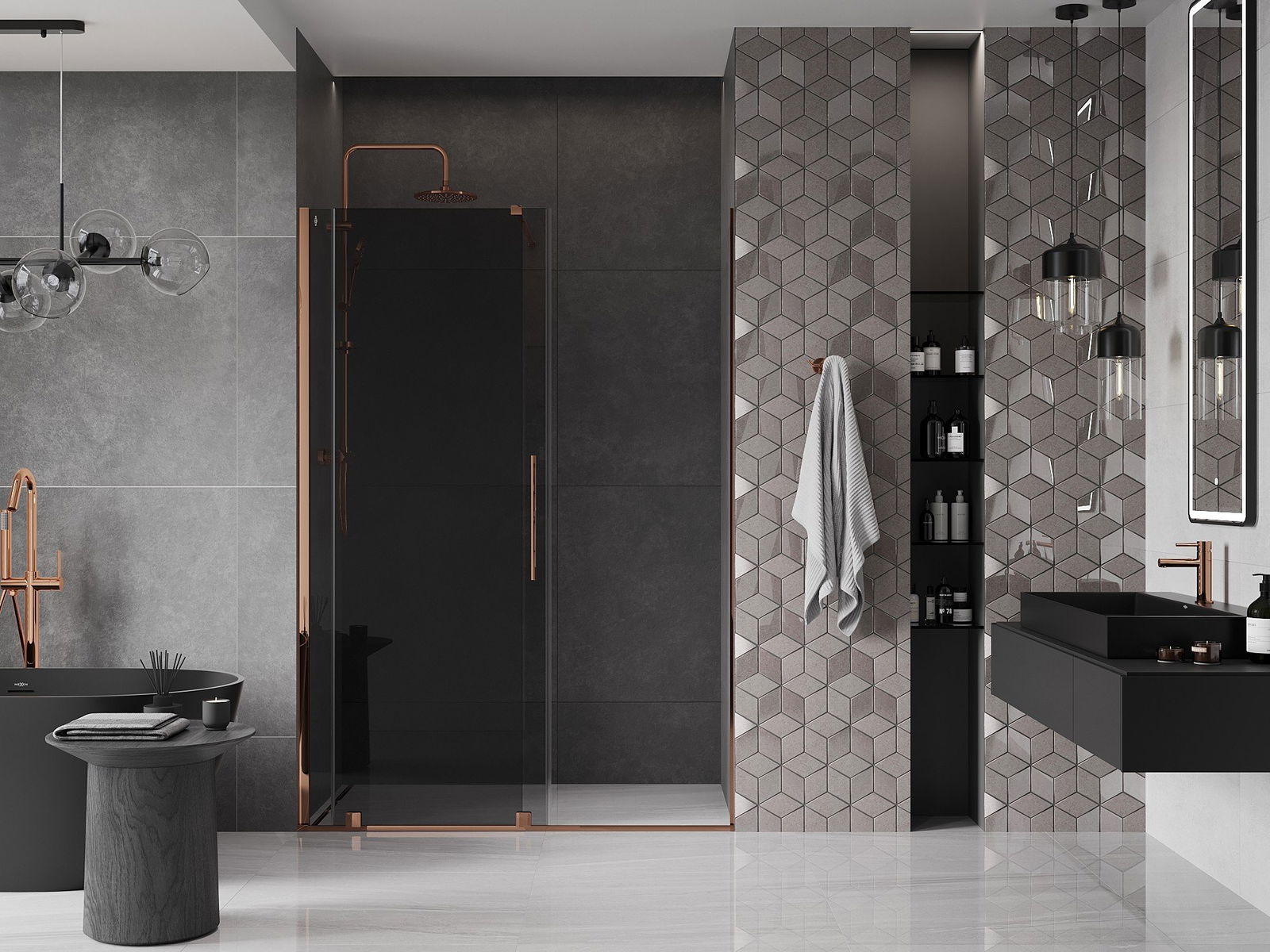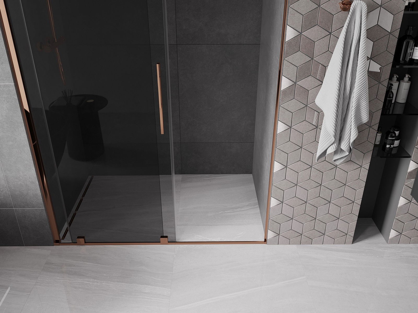 Mexen Velar drzwi prysznicowe rozsuwane 160 cm, grafit, różowe złoto - 871-160-000-41-60