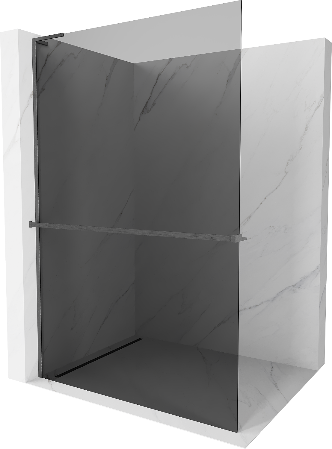 Mexen Kioto+ L ścianka prysznicowa z półką Walk-in 80 x 200 cm, grafit, gun gray szczotkowany - 800-080-123-66-40