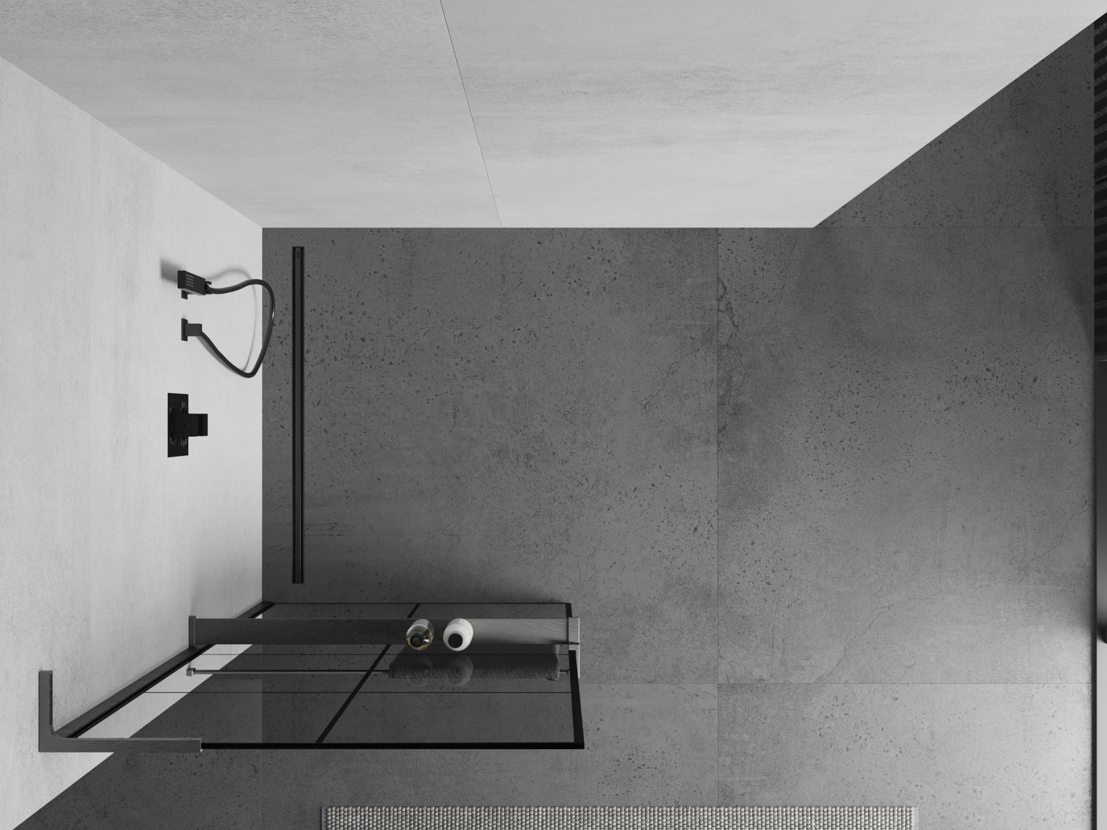 Mexen Kioto+ L ścianka prysznicowa z półką Walk-in 90 x 200 cm, czarna kratka, gun gray szczotkowany - 800-090-123-66-77