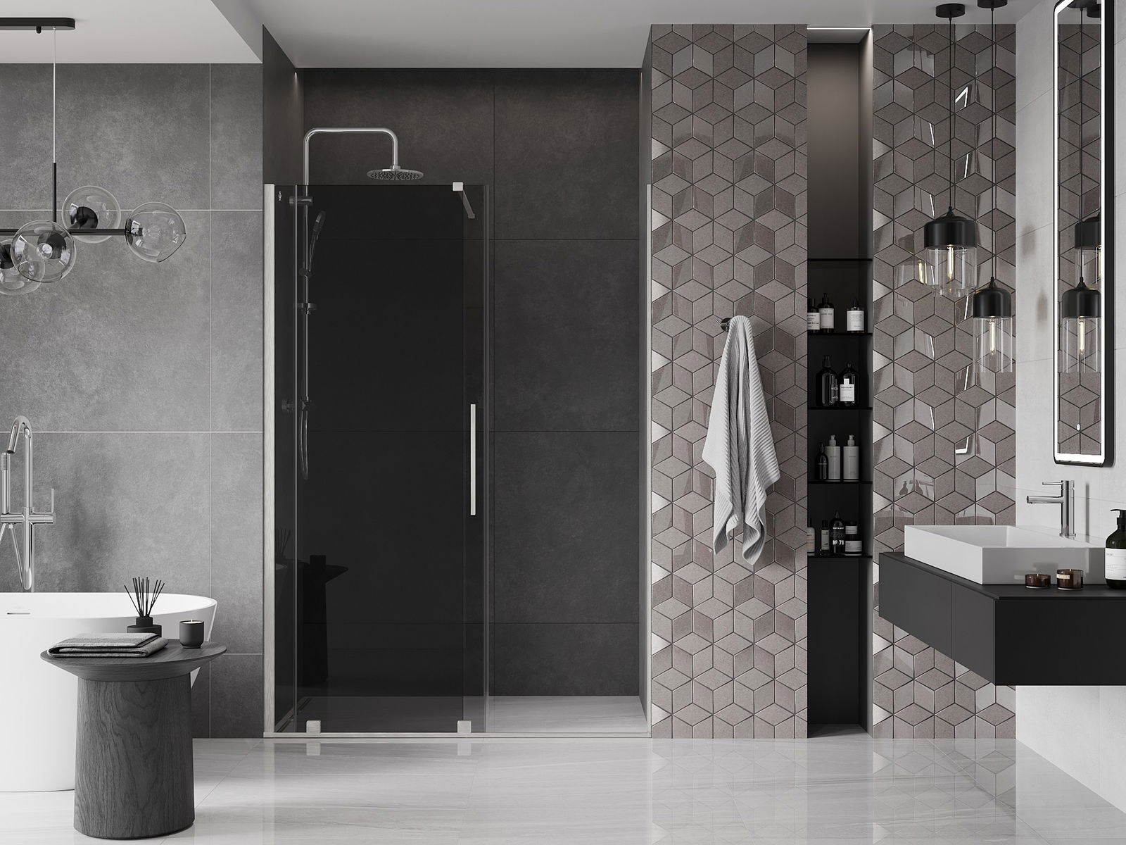Dzięki zastosowaniu uniwersalnego systemu mocowania, drzwi prysznicowe mogą zostać zamontowane z prawej lub z lewej strony, zależnie od potrzeb. Dzięki temu możesz z łatwością zaprojektować prysznic dopasowany do przestrzeni łazienki.