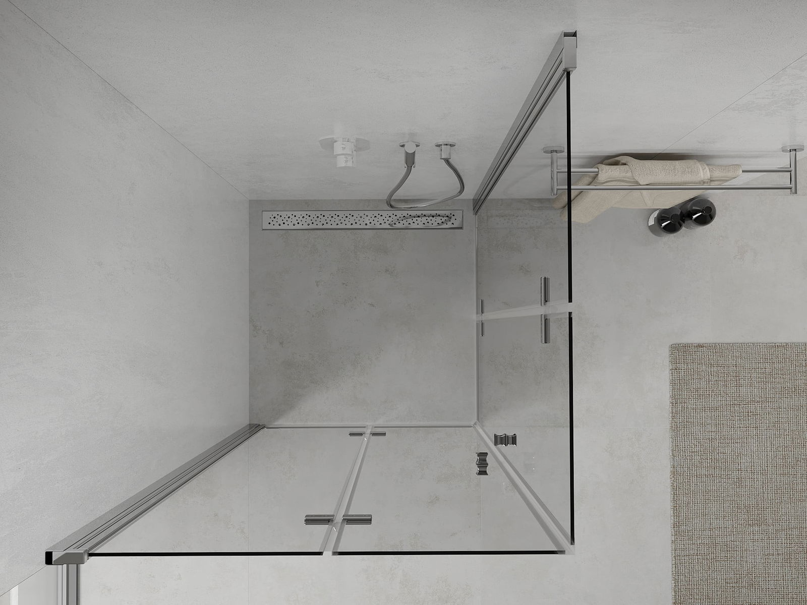 Poręczny i wygodny uchwyt został wykonany z trwałego i odpornego metalu. Modny kształt w połączeniu z wykończeniem dopasowanym do koloru profili nadaje całości nowoczesnego i stylowego wyglądu, podkreślając estetykę każdej łazienki.