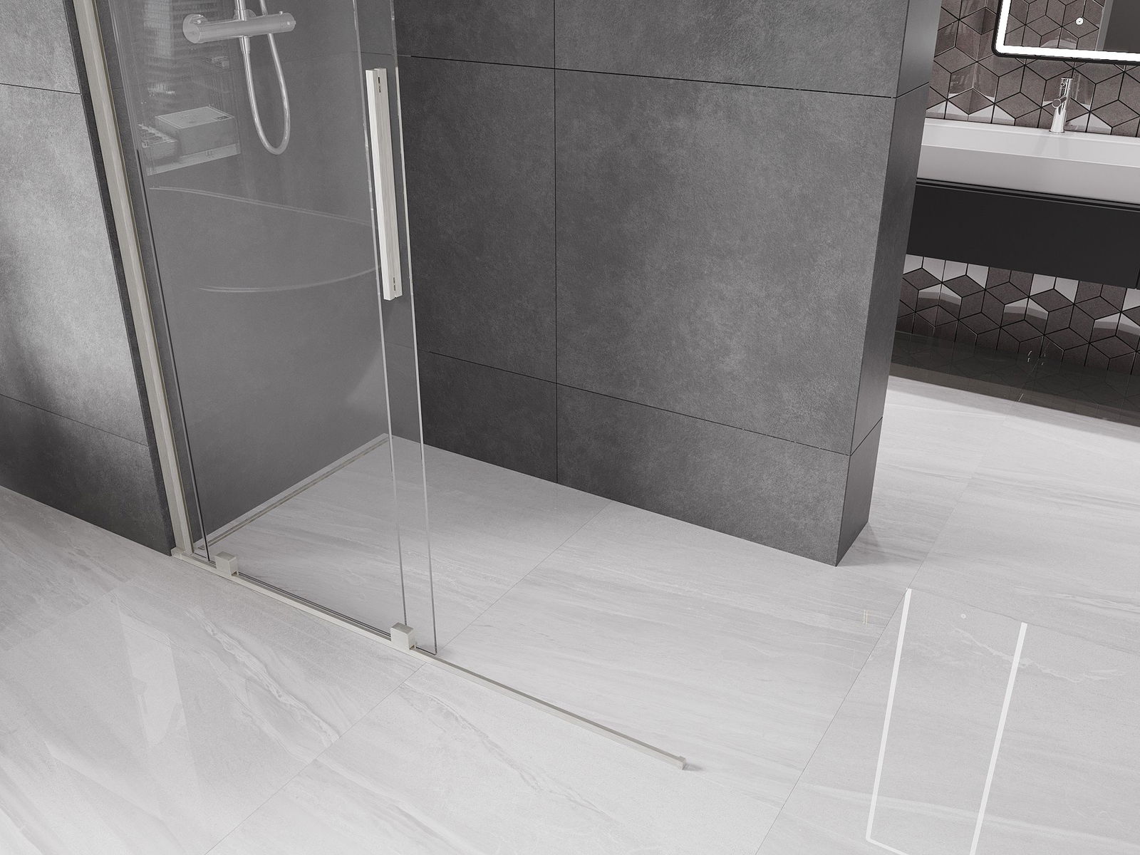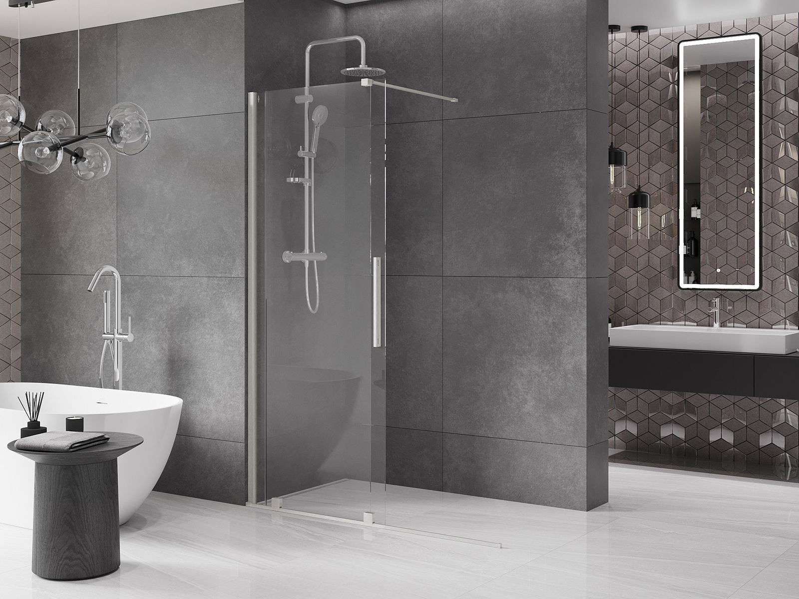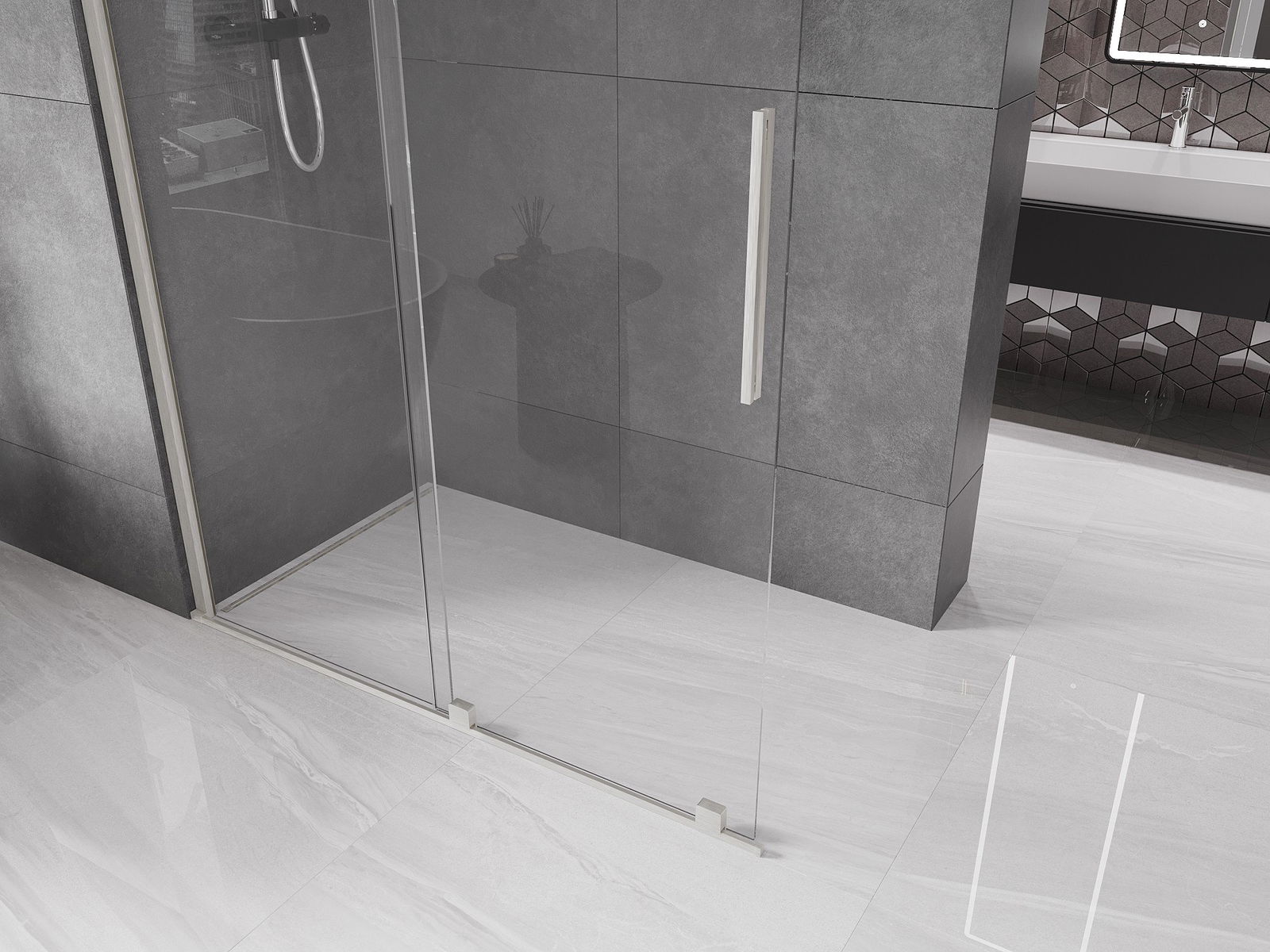 Ścianka prysznicowa walk-in to idealne rozwiązanie dla osób niepełnosprawnych. Kabina otwarta zapewnia łatwy dostęp, eliminując potrzebę pokonywania progów i drzwi. Korzystanie z prysznica jest komfortowe i przyjazne dla każdego.