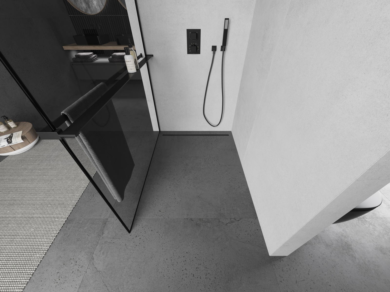 Mexen Kioto+ L ścianka prysznicowa z półką Walk-in 70 x 200 cm, czarna ramka, czarna - 800-070-123-70-70