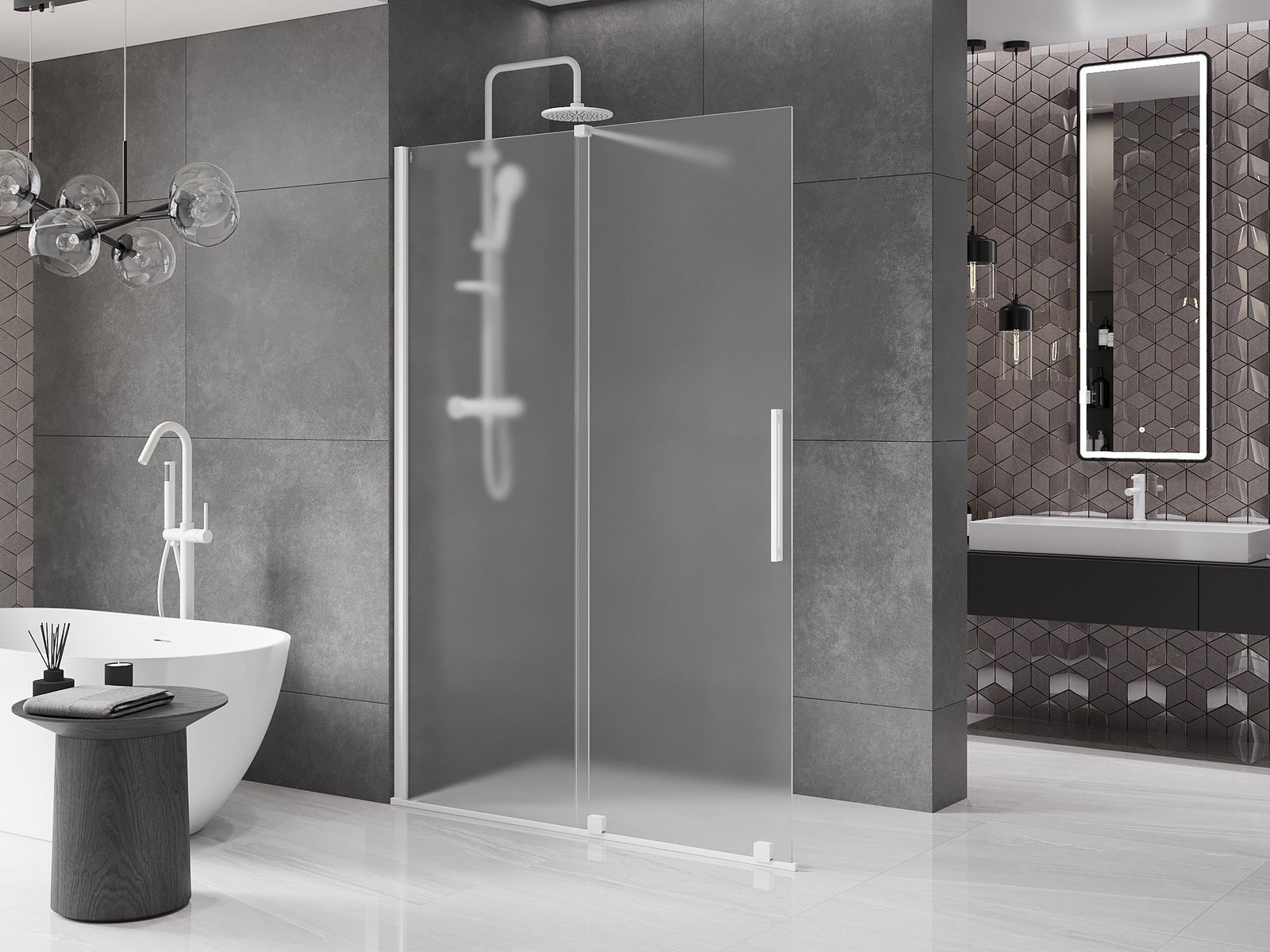Mexen Velar ścianka prysznicowa rozsuwana Walk-in 130 x 200 cm, szron 8 mm, biała - 871-130-000-33-20