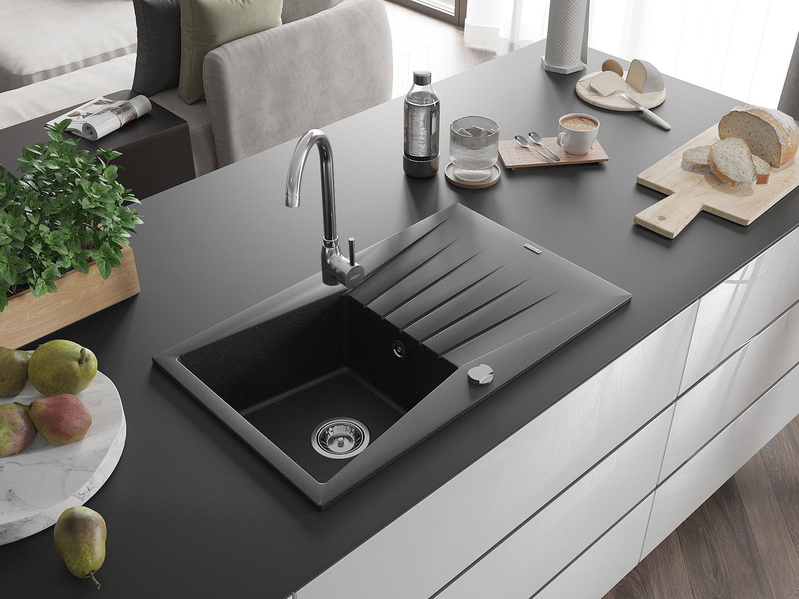 Zlewozmywak został wykonany z wysokiej jakości granitu. Stanowi eleganckie, a przede wszystkim praktyczne uzupełnienie każdej kuchni, niezależnie od jej stylu. Wysoka jakość oraz trwałość granitu zapewniają wieloletnie użytkowanie.