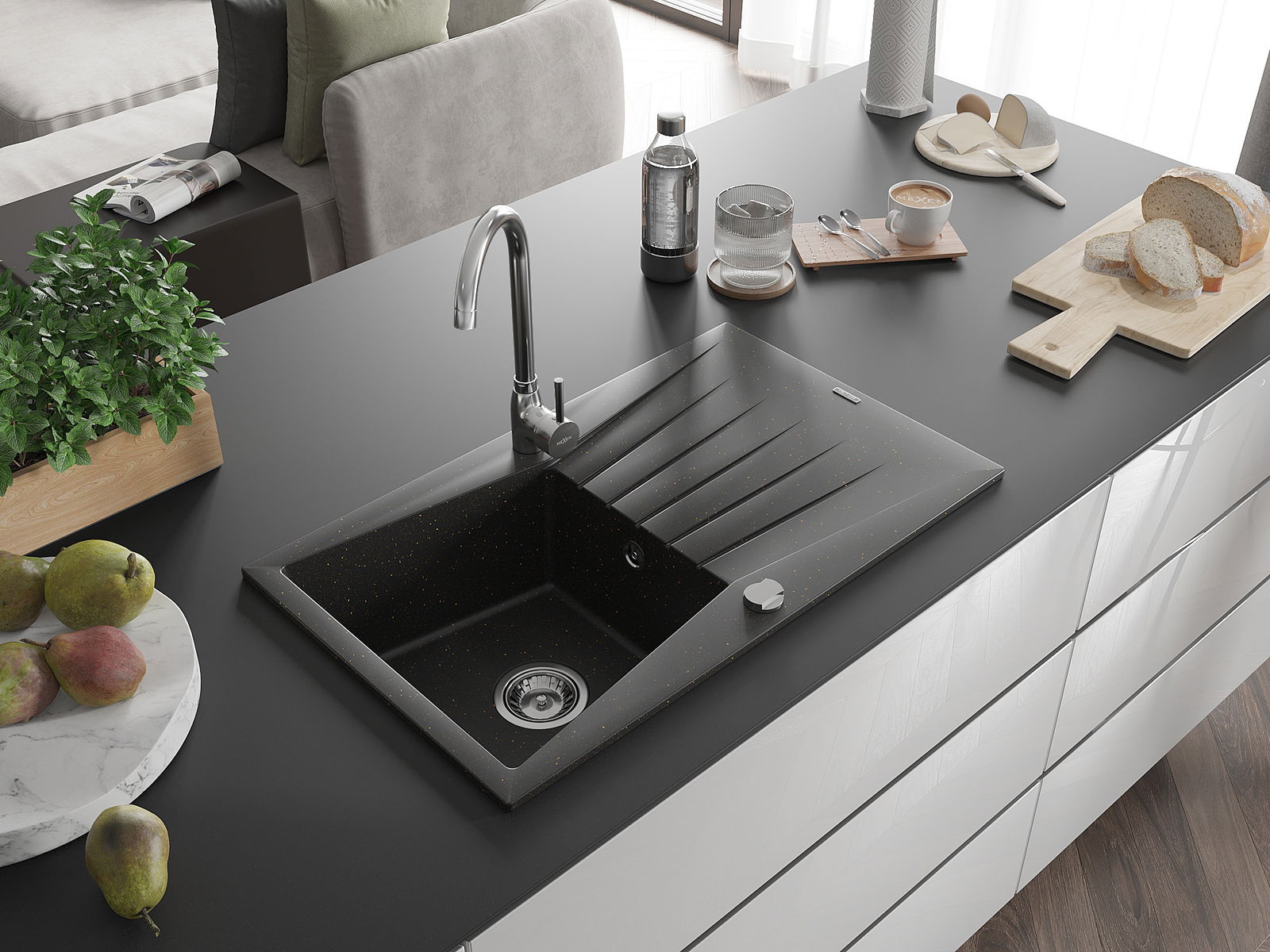 Zlewozmywak został wykonany z wysokiej jakości granitu. Stanowi eleganckie, a przede wszystkim praktyczne uzupełnienie każdej kuchni, niezależnie od jej stylu. Wysoka jakość oraz trwałość granitu zapewniają wieloletnie użytkowanie.