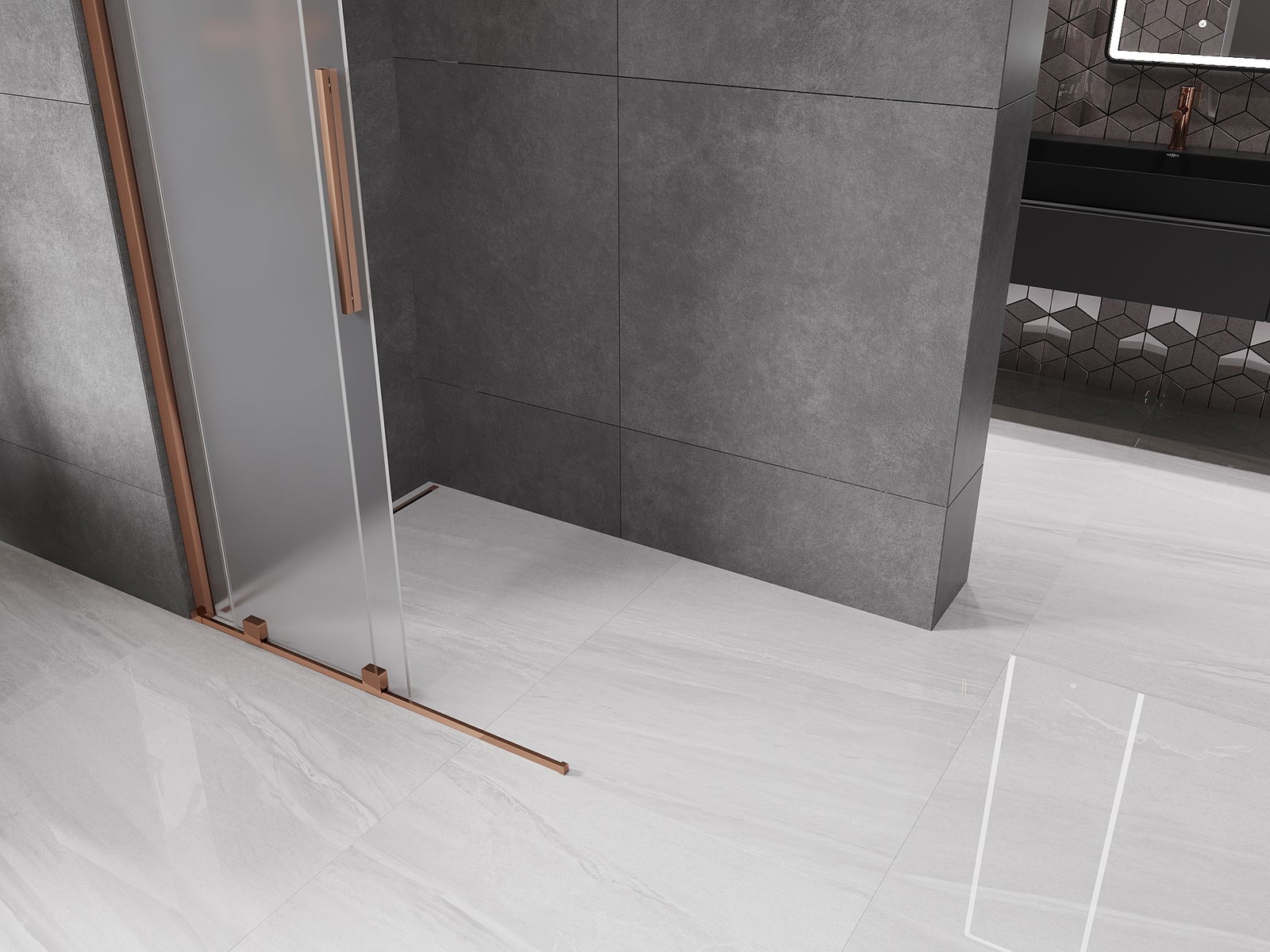 Mexen Velar ścianka prysznicowa rozsuwana Walk-in 75 x 200 cm, szron 8 mm, różowe złoto - 871-075-000-33-60