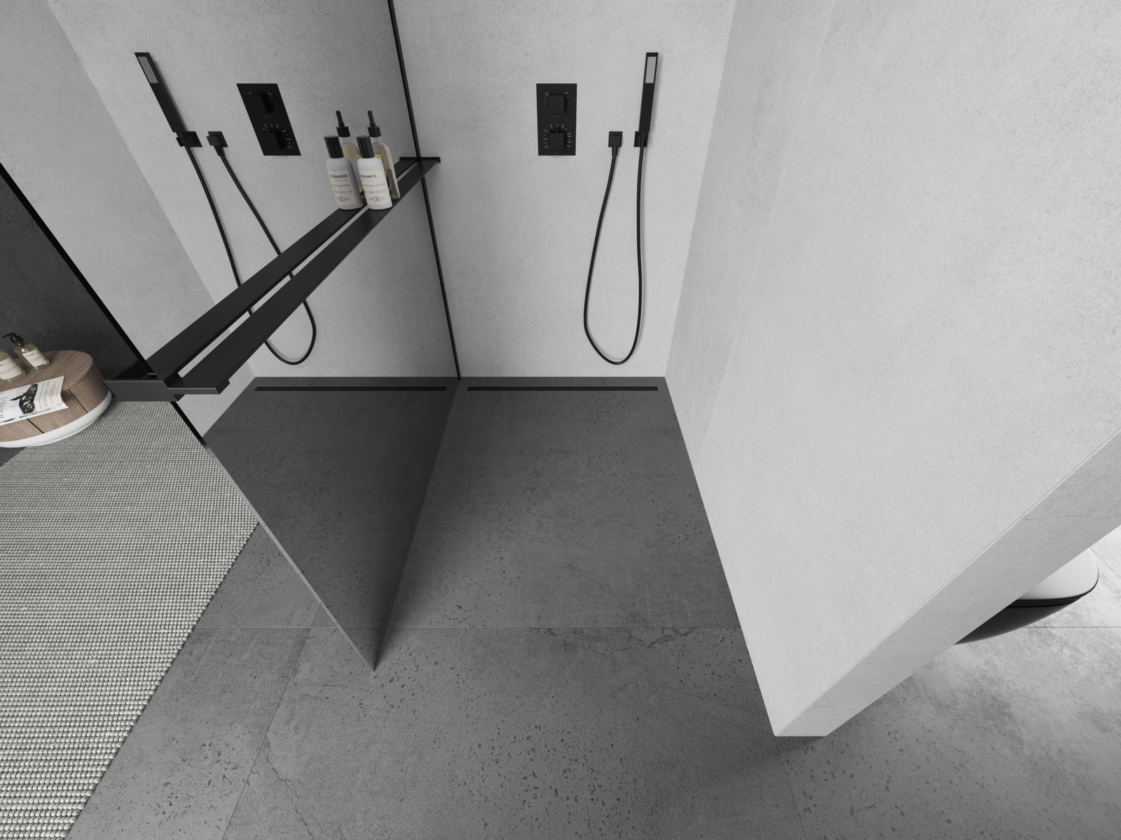 Mexen Kioto+ L ścianka prysznicowa z półką Walk-in 120 x 200 cm, lustro, czarna - 800-120-123-70-50