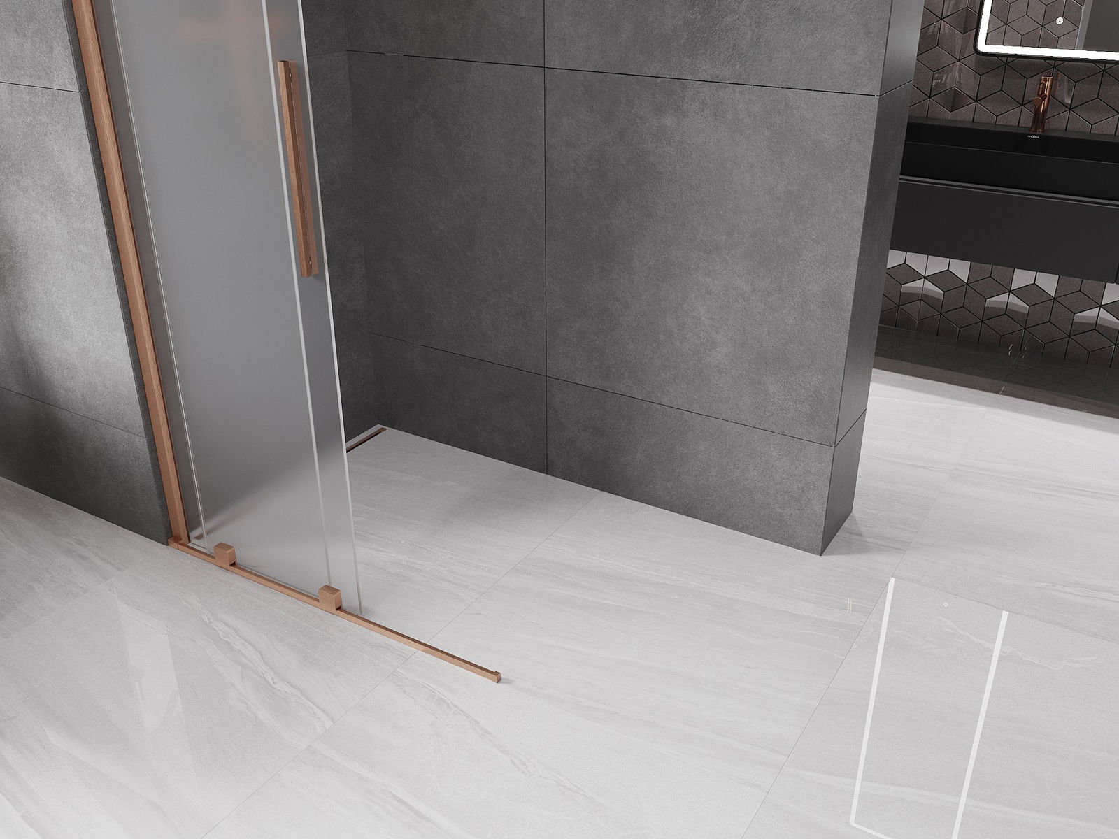 Mexen Velar ścianka prysznicowa rozsuwana Walk-in 85 x 200 cm, szron 8 mm, miedź szczotkowana - 871-085-000-33-65
