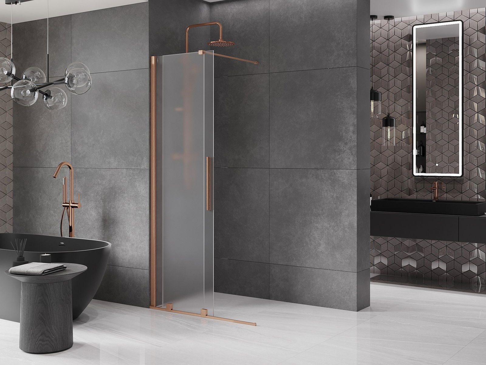 Mexen Velar ścianka prysznicowa rozsuwana Walk-in 90 x 200 cm, szron 8 mm, miedź szczotkowana - 871-090-000-33-65