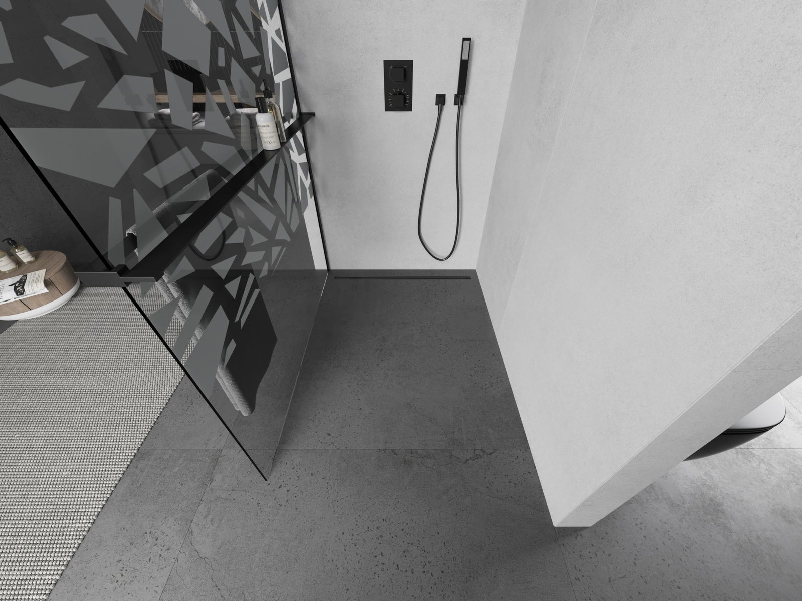 Mexen Kioto+ L ścianka prysznicowa z półką Walk-in 70 x 200 cm, biały wzór, czarna - 800-070-123-70-85