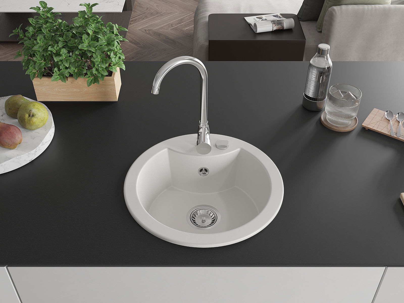 Zlewozmywak został wykonany z wysokiej jakości granitu. Stanowi eleganckie, a przede wszystkim praktyczne uzupełnienie każdej kuchni, niezależnie od jej stylu. Wysoka jakość oraz trwałość granitu zapewniają wieloletnie użytkowanie.