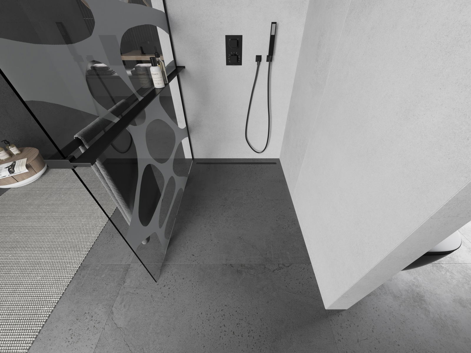 Mexen Kioto+ L ścianka prysznicowa z półką Walk-in 80 x 200 cm, biała fala, czarna - 800-080-123-70-97