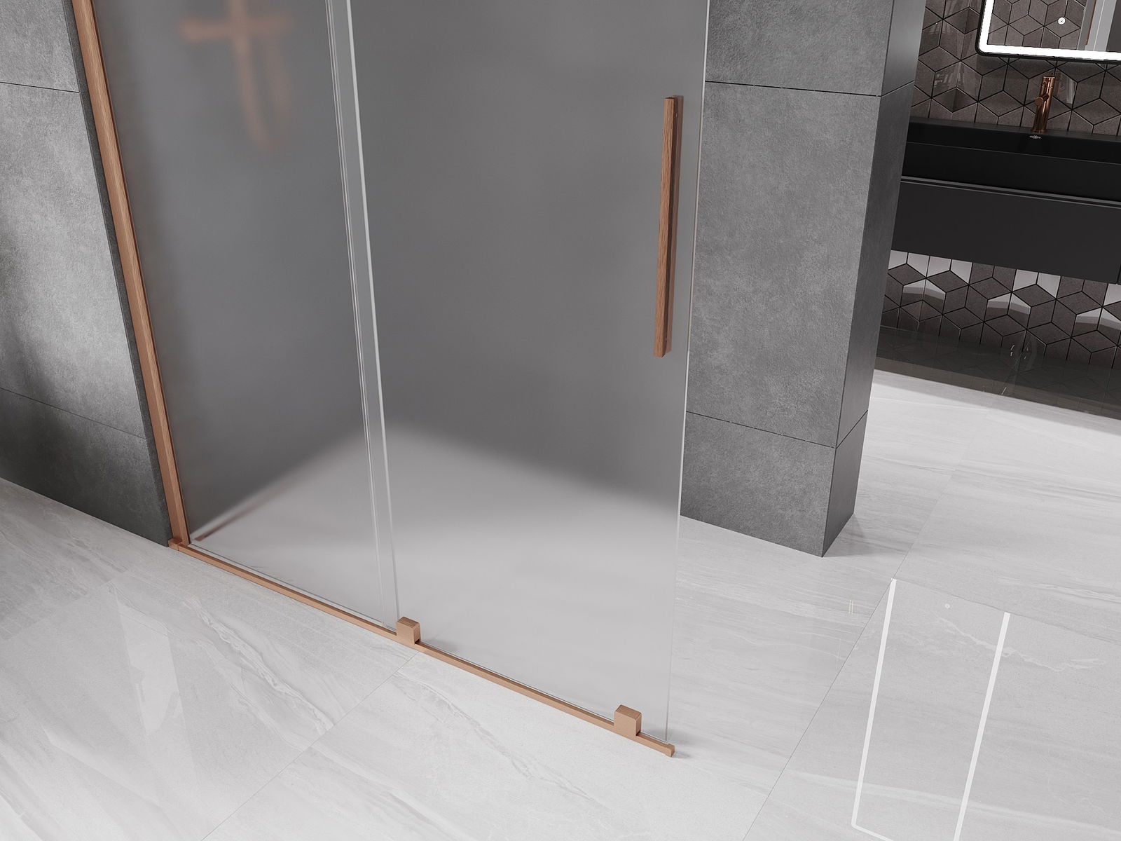 Mexen Velar ścianka prysznicowa rozsuwana Walk-in 140 x 200 cm, szron 8 mm, miedź szczotkowana - 871-140-000-33-65