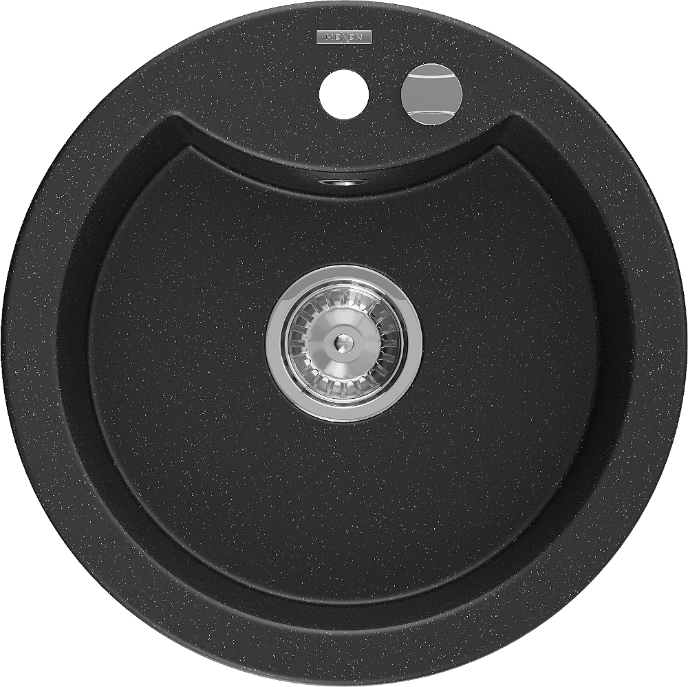 Mexen Diego zlewozmywak granitowy 1-komorowy 488 x 480 mm, czarny/srebrny metalik, syfon chrom - 6512481000-73