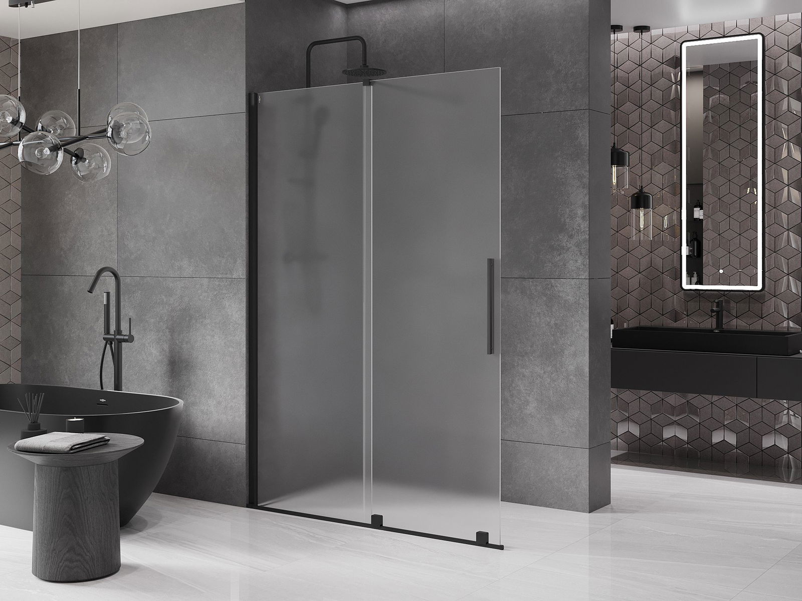 Mexen Velar ścianka prysznicowa rozsuwana Walk-in 140 x 200 cm, szron 8 mm, czarna - 871-140-000-33-70