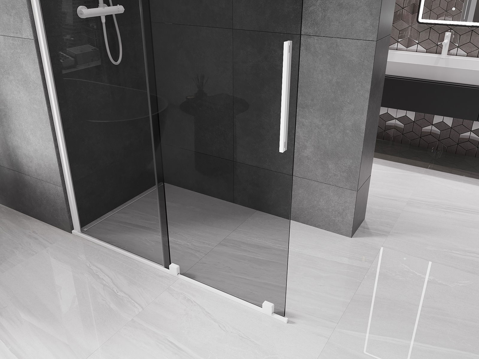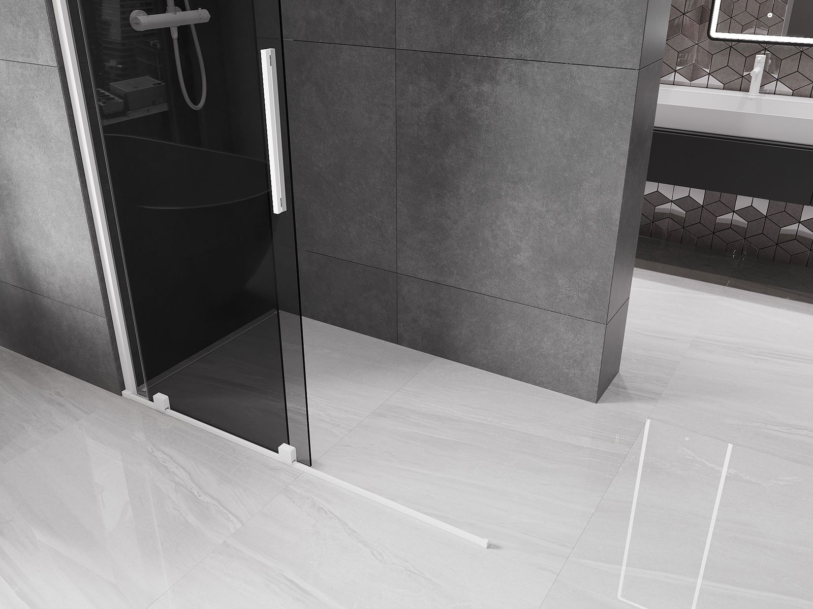 Mexen Velar ścianka prysznicowa rozsuwana Walk-in 150 x 200 cm, grafit 8 mm, biała - 871-150-000-43-20
