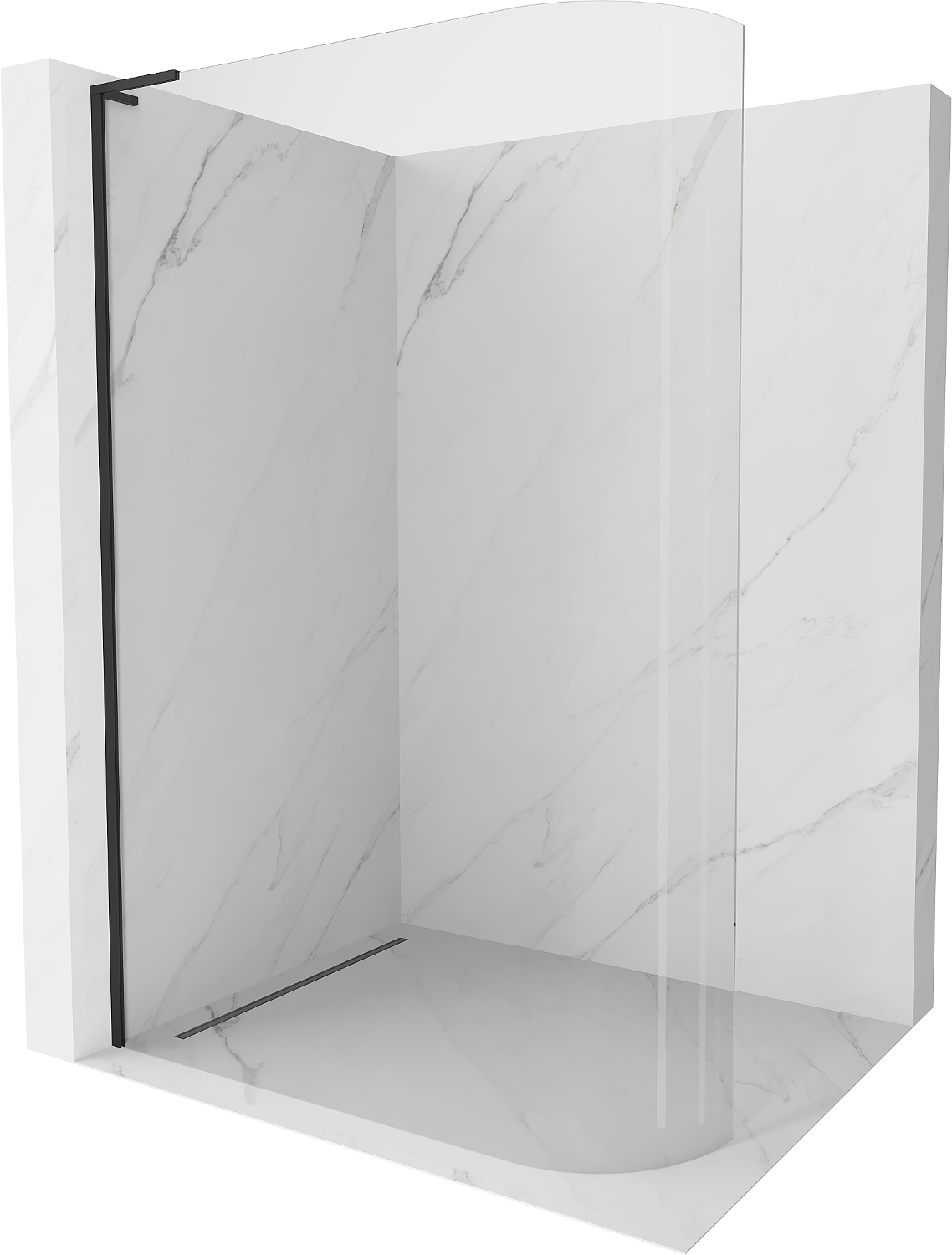 Specyfikacja produktu: Szerokość: 100 cm Wysokość: 200 cm Montaż: Uniwersalny, prawa lub lewa Kolor szkła: Transparentne - Przeźroczyste Wykończenie: Czarny Rodzaj szkła: Hartowane Grubość szkła: 8 mm Profil: Aluminiowy Stabilizator kątowy L: Stal nierdzewna Powłoka ułatwiająca czyszczenie Niwelacja nierówności ściany Możliwość montażu na brodziku lub płytkach