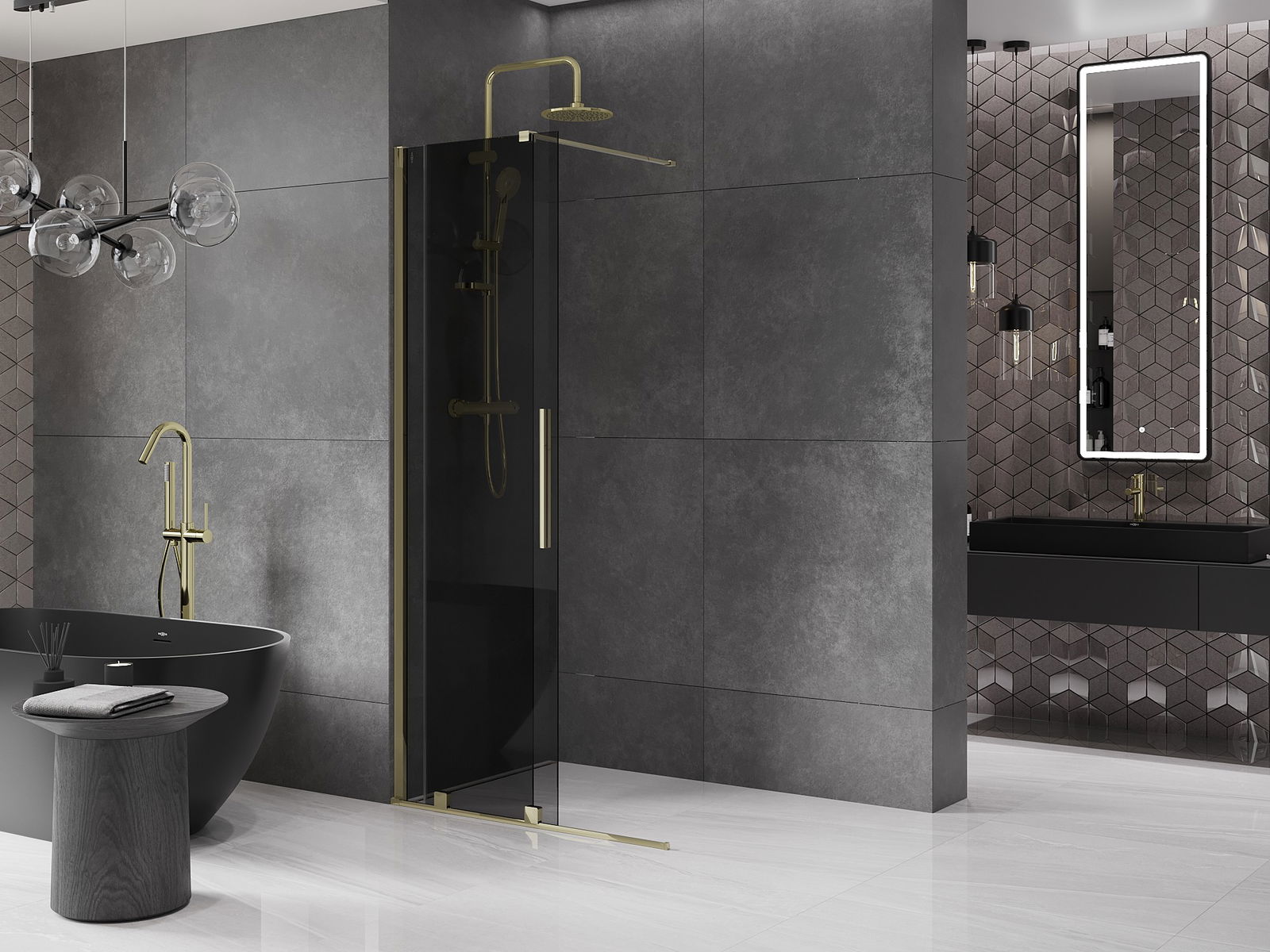Mexen Velar ścianka prysznicowa rozsuwana Walk-in 120 x 200 cm, grafit 8 mm, złota - 871-120-000-43-50
