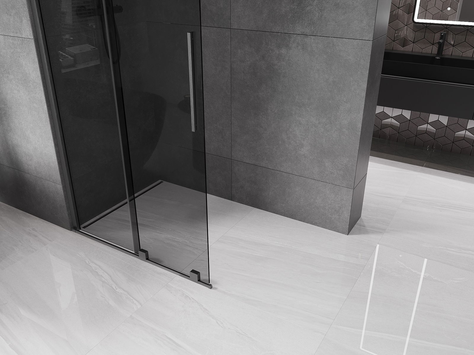Dzięki zastosowaniu uniwersalnego systemu mocowania, drzwi prysznicowe mogą zostać zamontowane z prawej lub z lewej strony, zależnie od potrzeb. Dzięki temu możesz z łatwością zaprojektować prysznic dopasowany do przestrzeni łazienki.