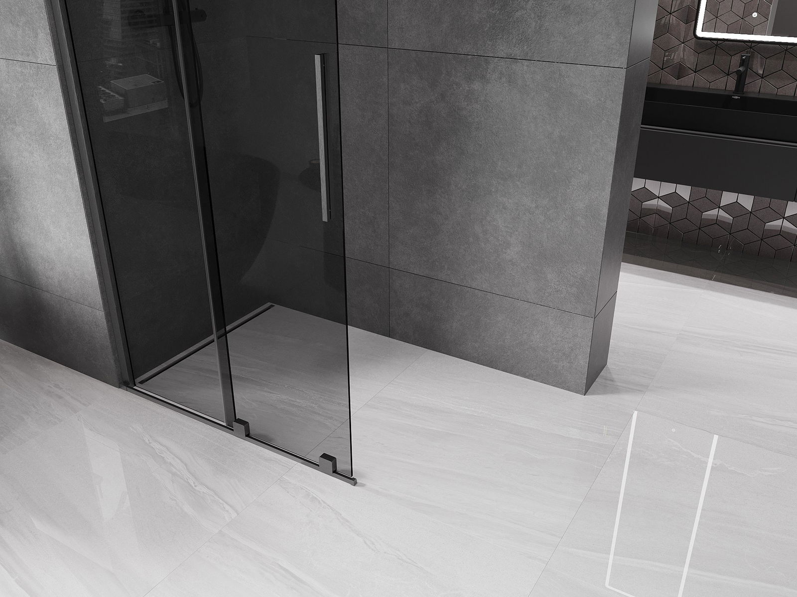 Mexen Velar ścianka prysznicowa rozsuwana Walk-in 80 x 200 cm, grafit 8 mm, gun gray szczotkowany - 871-080-000-43-66