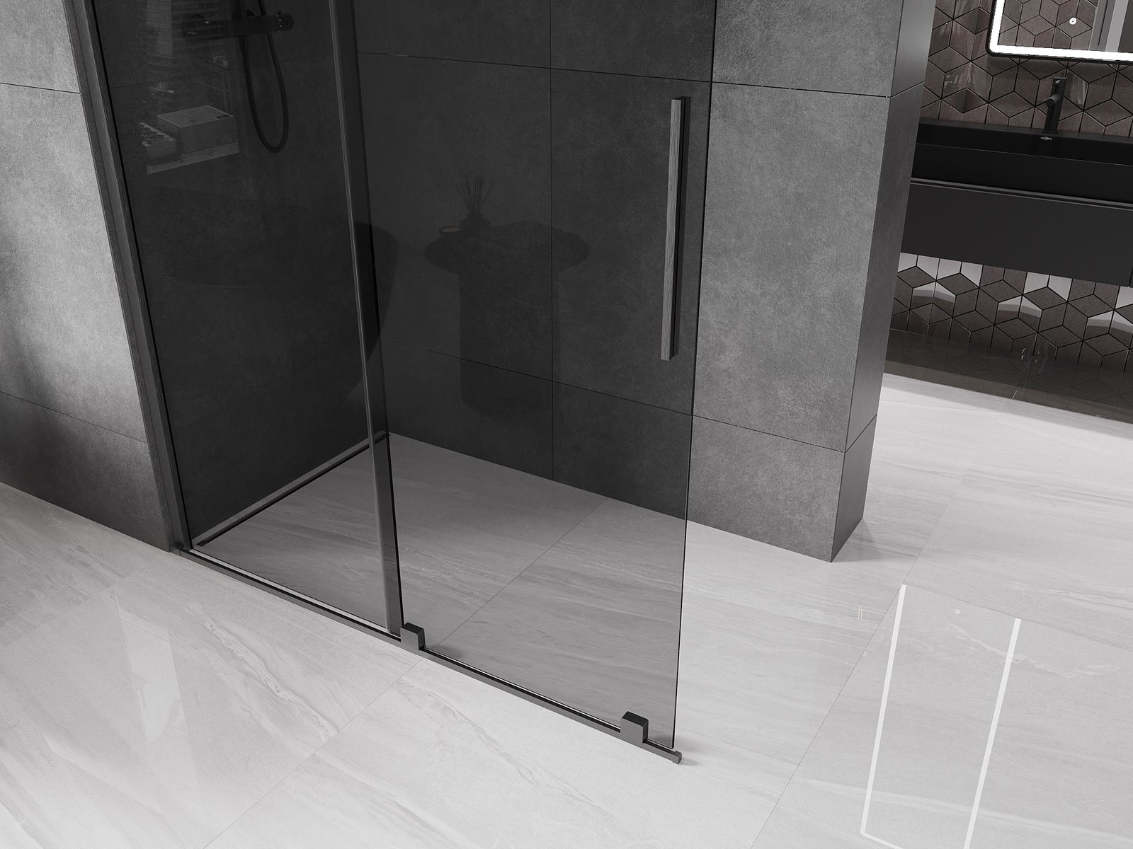 Ścianka prysznicowa walk-in to idealne rozwiązanie dla osób niepełnosprawnych. Kabina otwarta zapewnia łatwy dostęp, eliminując potrzebę pokonywania progów i drzwi. Korzystanie z prysznica jest komfortowe i przyjazne dla każdego.