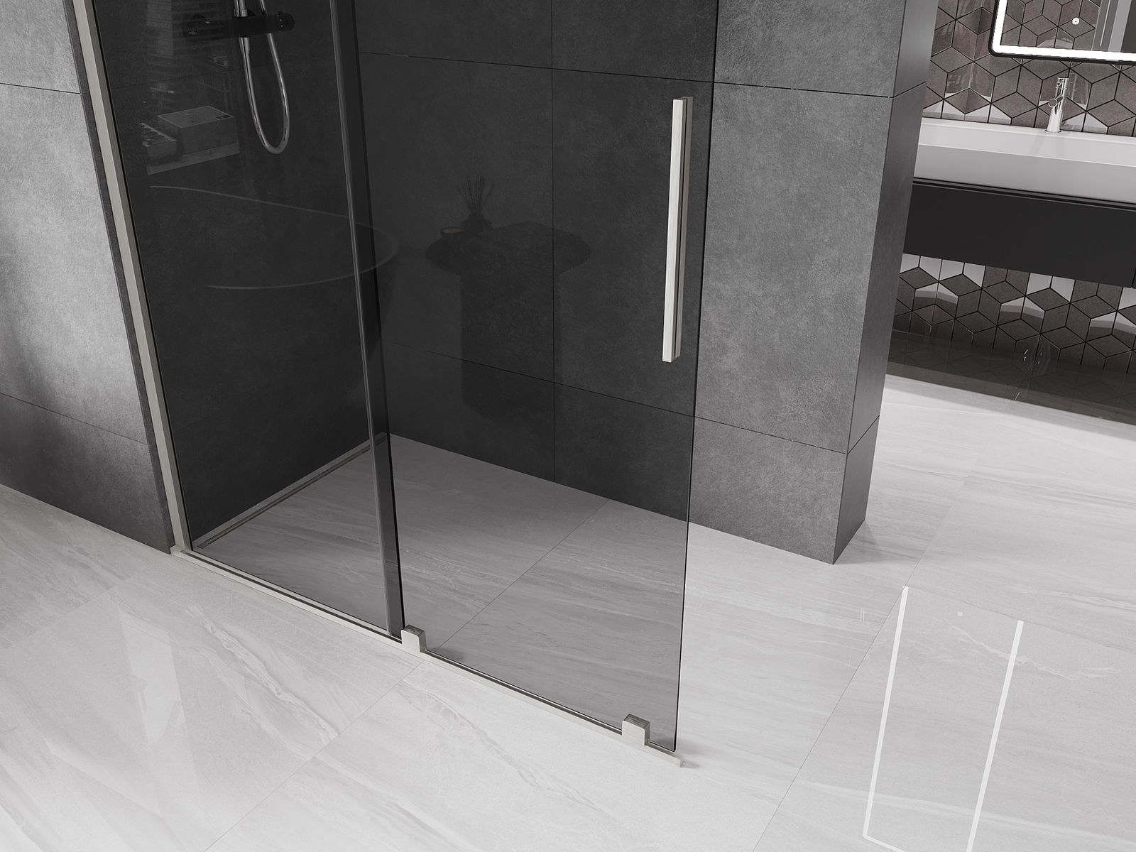 Ścianka prysznicowa walk-in to idealne rozwiązanie dla osób niepełnosprawnych. Kabina otwarta zapewnia łatwy dostęp, eliminując potrzebę pokonywania progów i drzwi. Korzystanie z prysznica jest komfortowe i przyjazne dla każdego.