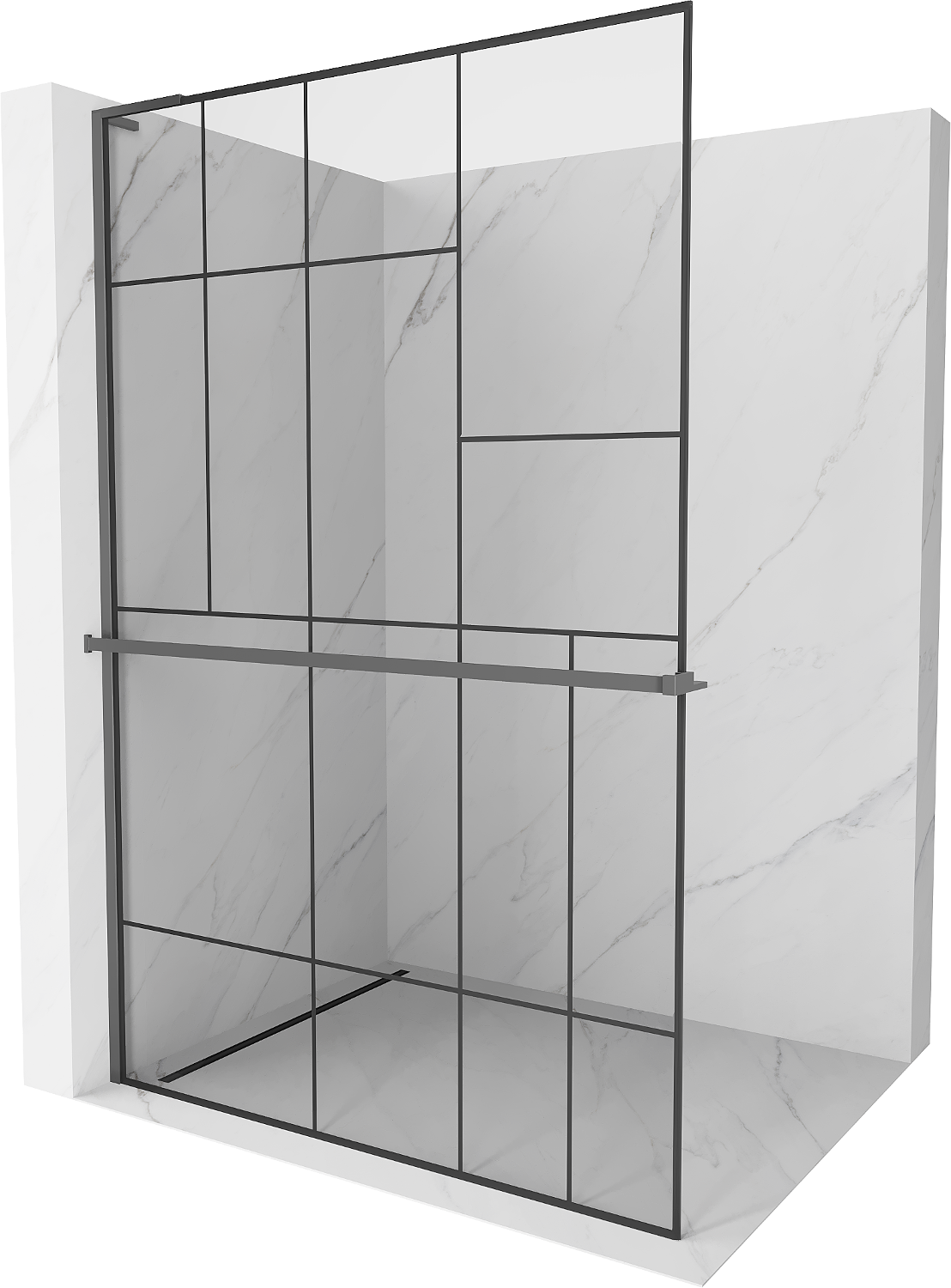 Mexen Kioto+ L ścianka prysznicowa z półką Walk-in 100 x 200 cm, czarny wzór, gun metal - 800-100-123-95-78