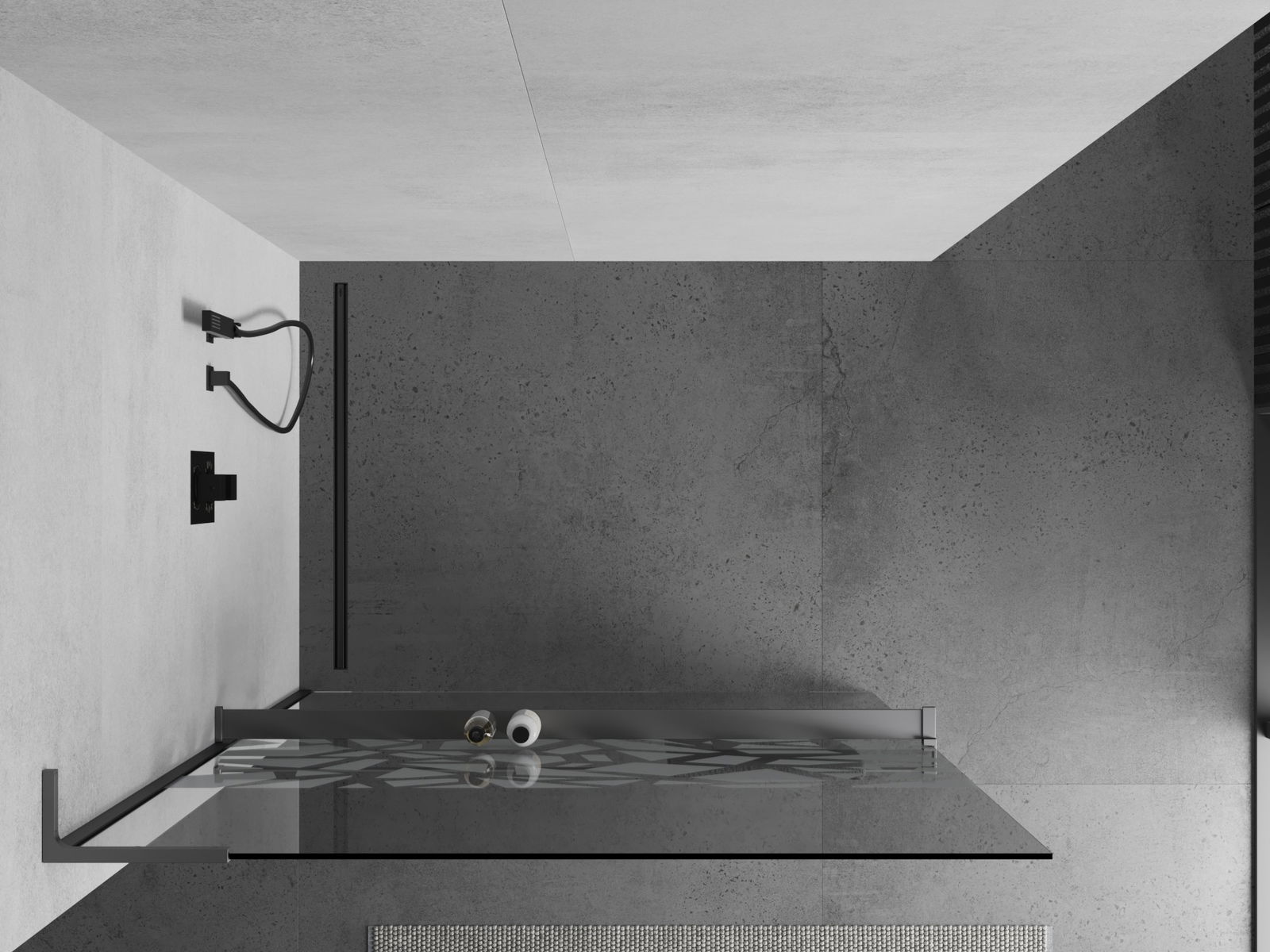 Mexen Kioto+ L ścianka prysznicowa z półką Walk-in 110 x 200 cm, biały wzór, gun metal - 800-110-123-95-85
