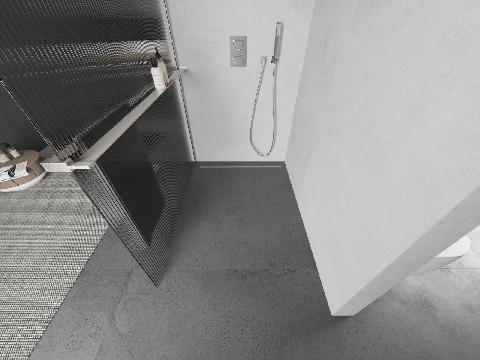 Mexen Kioto+ L ścianka prysznicowa z półką Walk-in 110 x 200 cm, prążki, nikiel szczotkowany - 800-110-123-97-09