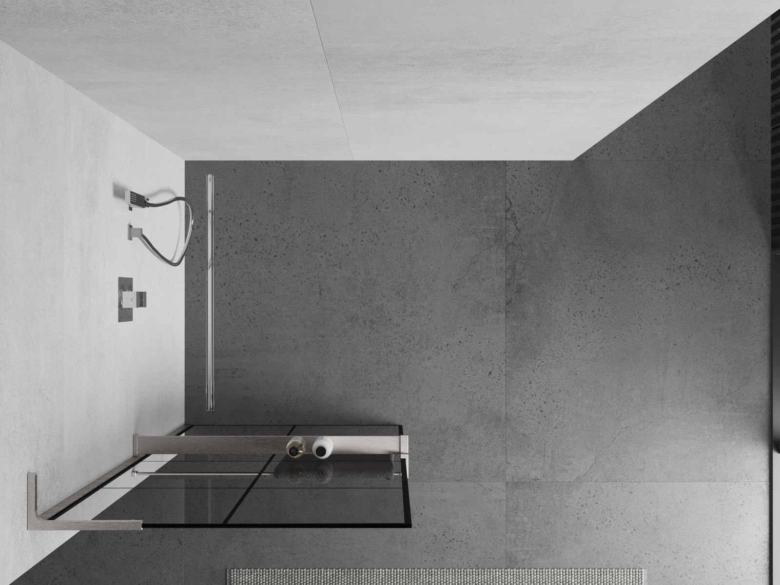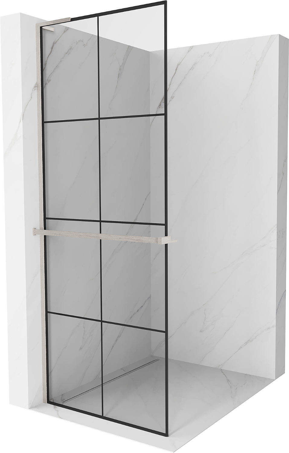 Mexen Kioto+ L ścianka prysznicowa z półką Walk-in 80 x 200 cm, czarna kratka, nikiel szczotkowany - 800-080-123-97-77