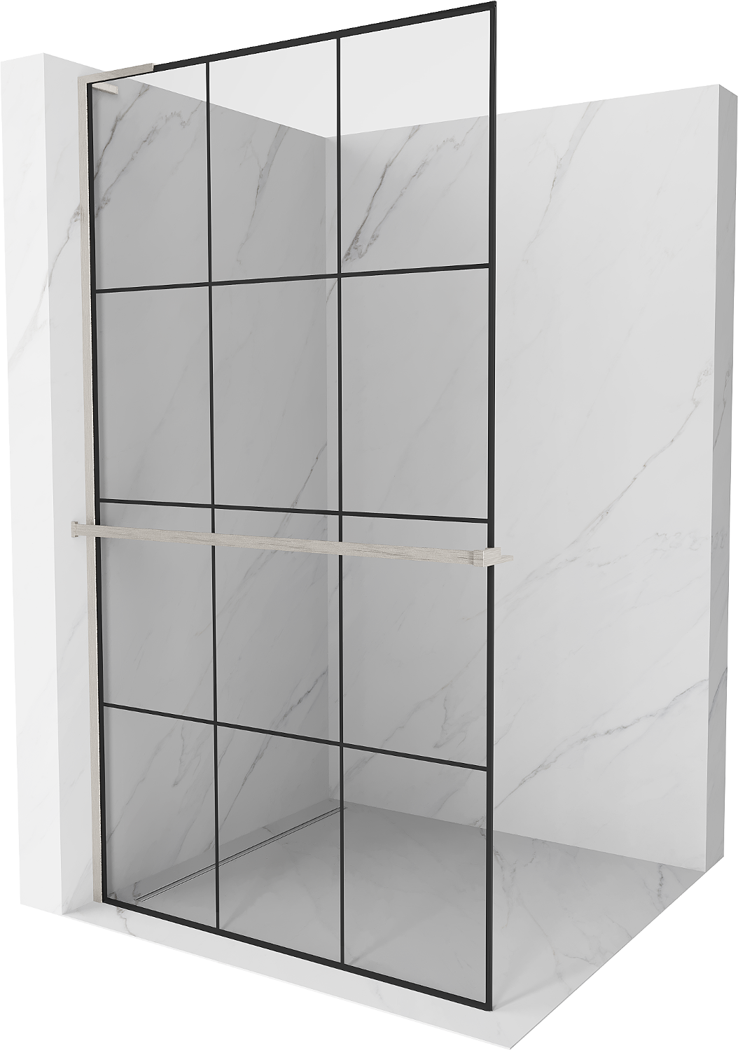 Mexen Kioto+ L ścianka prysznicowa z półką Walk-in 110 x 200 cm, czarna kratka, nikiel szczotkowany - 800-110-123-97-77