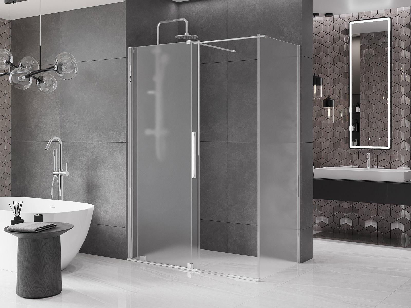 Poręczny i wygodny uchwyt został wykonany ze stali nierdzewnej. Modny kształt w połączeniu z wykończeniem dopasowanym do koloru profili nadaje całości nowoczesnego i stylowego wyglądu, podkreślając estetykę każdej łazienki.