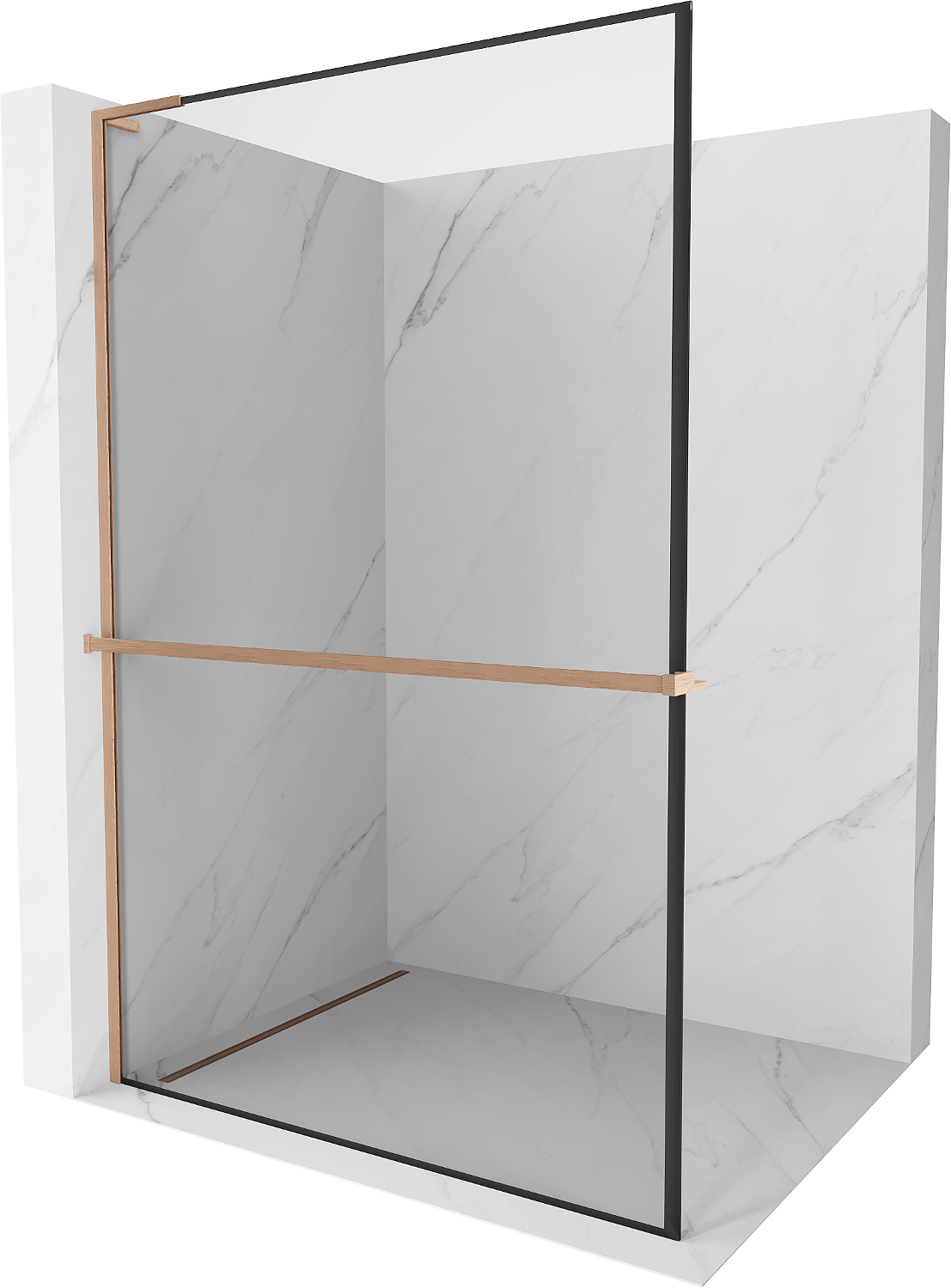 Mexen Kioto+ L ścianka prysznicowa z półką Walk-in 80 x 200 cm, czarna ramka, miedź szczotkowana - 800-080-123-65-70
