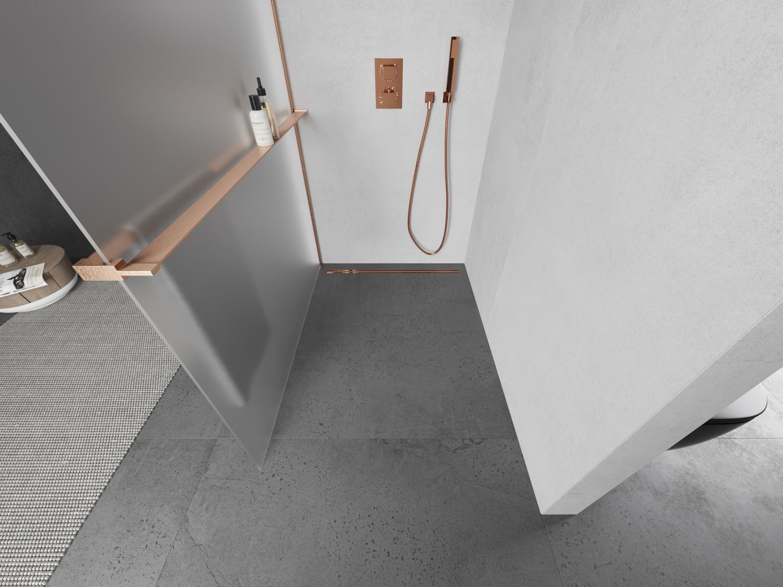 Mexen Kioto+ L ścianka prysznicowa z półką Walk-in 120 x 200 cm, szron, miedź szczotkowana - 800-120-123-65-30