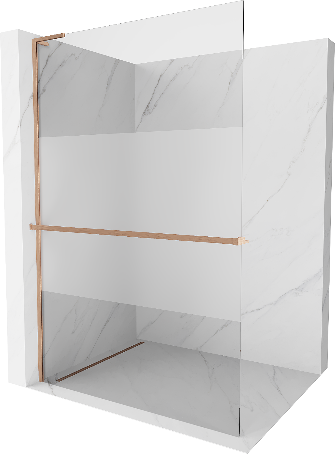 Mexen Kioto+ L ścianka prysznicowa z półką Walk-in 110 x 200 cm, transparent/szron, miedź szczotkowana - 800-110-123-65-35