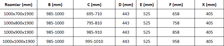 Rozmiar: 100x70 cm (drzwi 100 cm, ścianka 70 cm)