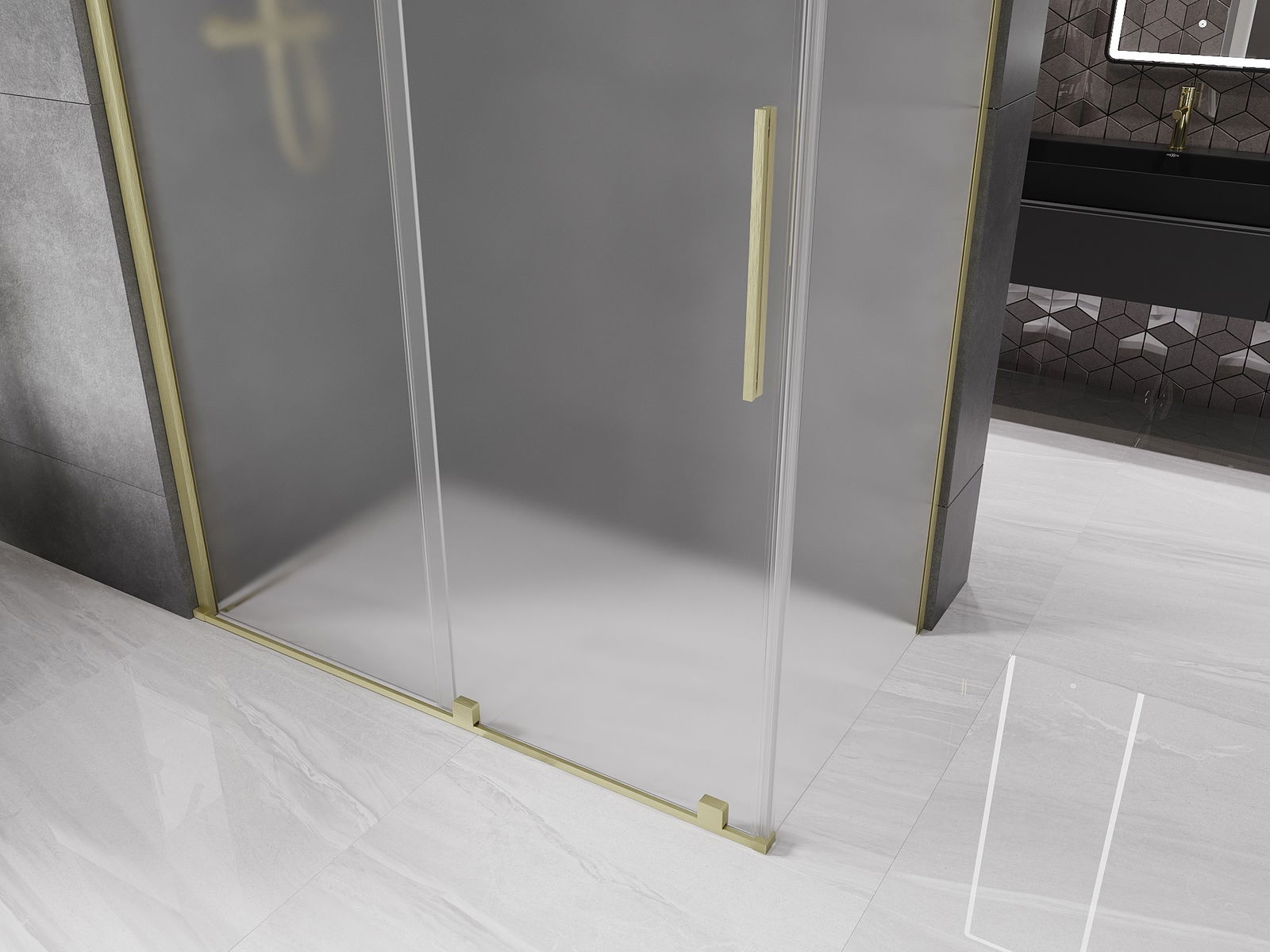 Mexen Velar kabina prysznicowa rozsuwana 160 x 90 cm, szron, złota szczotkowana - 871-160-090-31-55