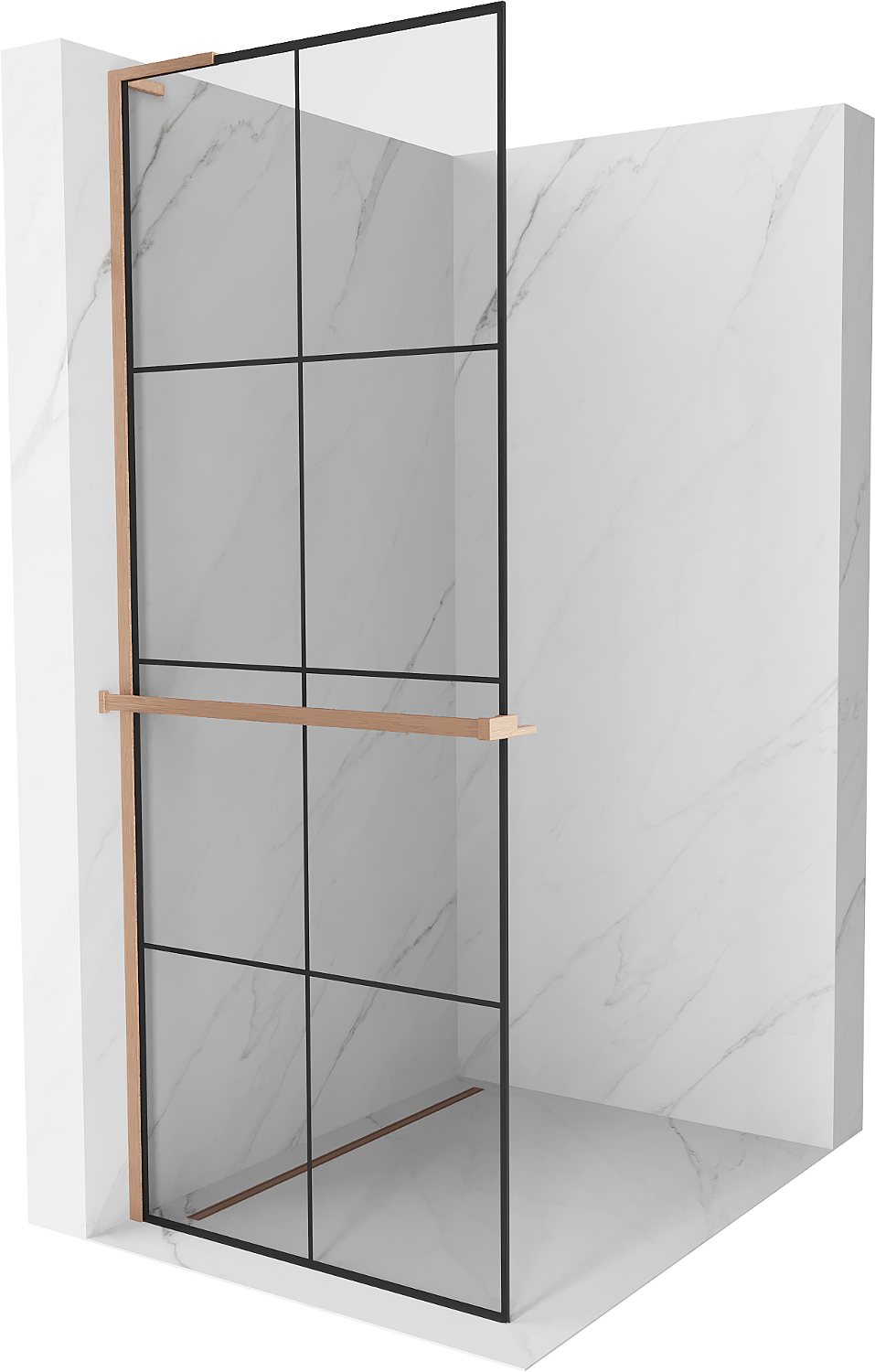Mexen Kioto+ L ścianka prysznicowa z półką Walk-in 80 x 200 cm, czarna kratka, miedź szczotkowana - 800-080-123-65-77