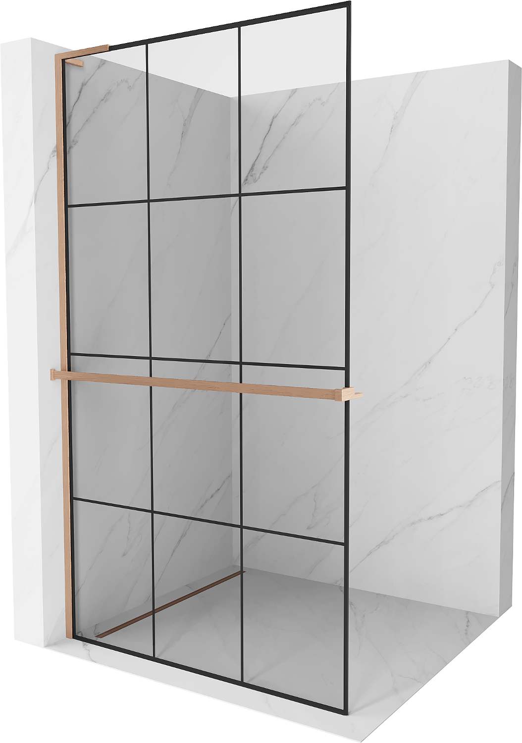 Mexen Kioto+ L ścianka prysznicowa z półką Walk-in 120 x 200 cm, czarna kratka, miedź szczotkowana - 800-120-123-65-77