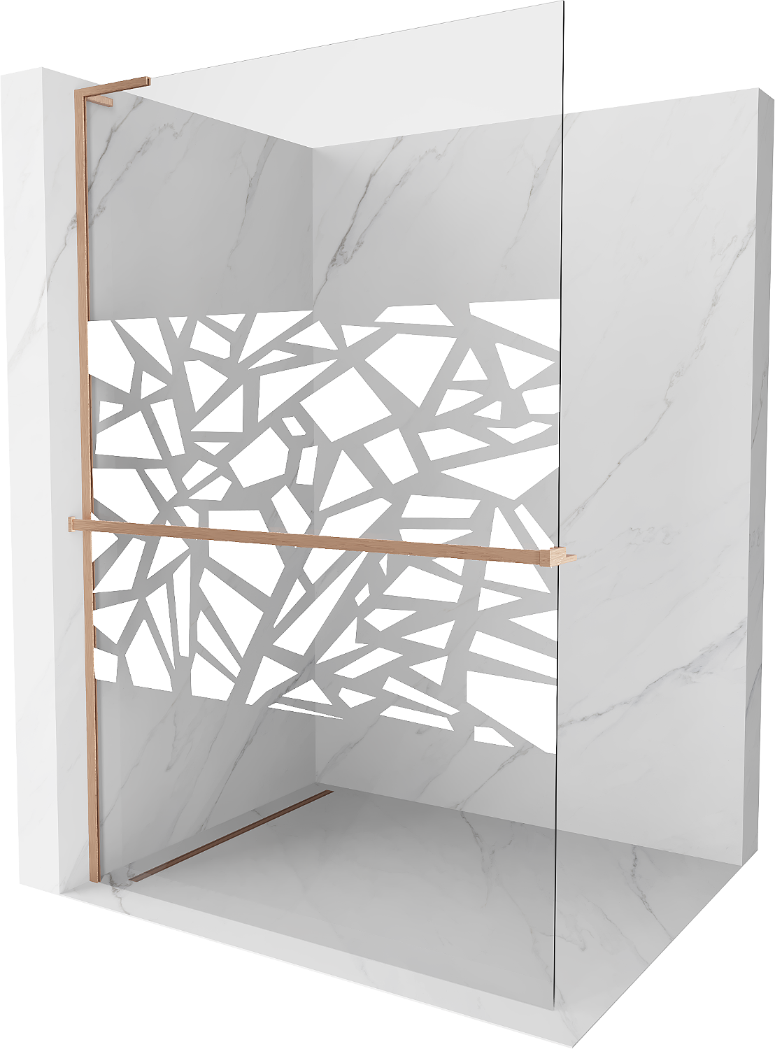 Mexen Kioto+ L ścianka prysznicowa z półką Walk-in 120 x 200 cm, biały wzór, miedź szczotkowana - 800-120-123-65-85