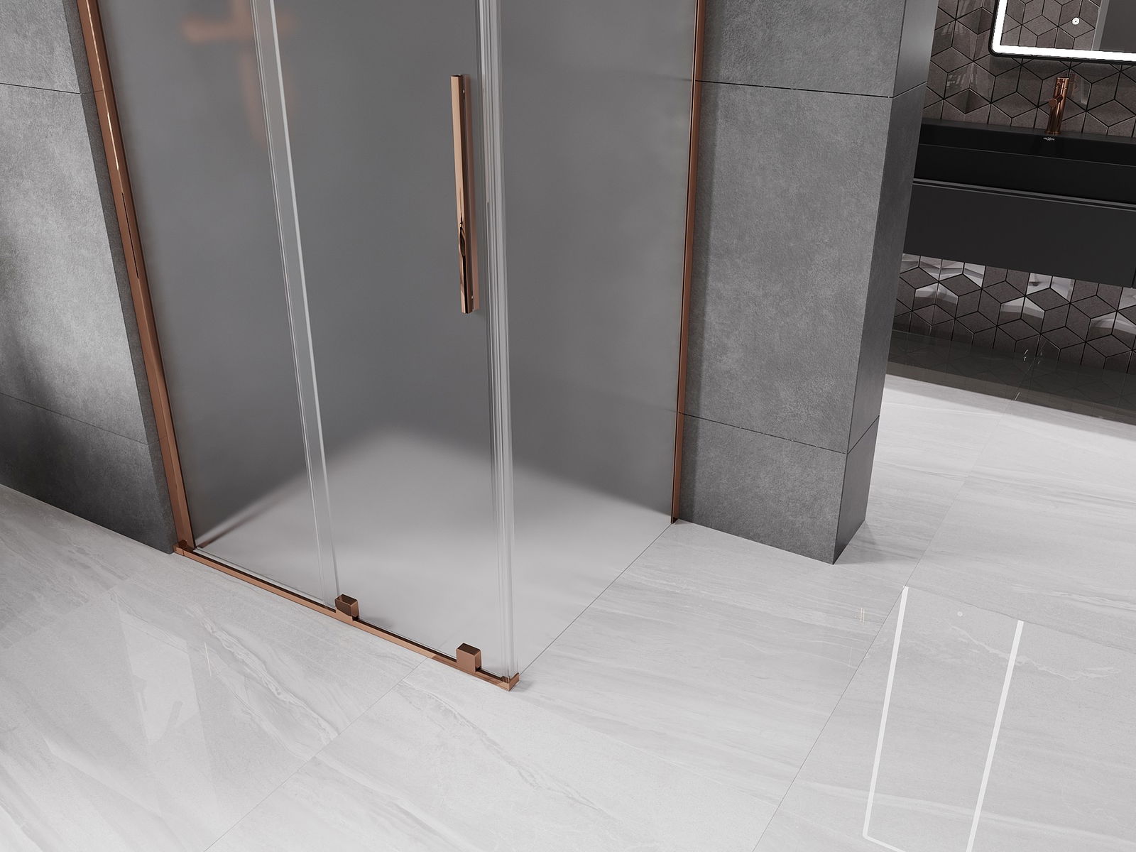 Mexen Velar kabina prysznicowa rozsuwana 120 x 70 cm, szron, różowe złoto - 871-120-070-31-60