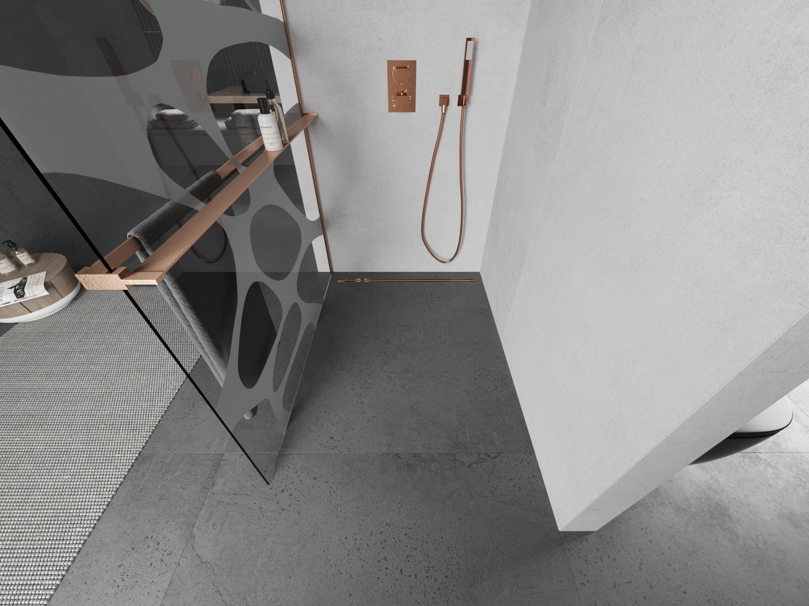 Mexen Kioto+ L ścianka prysznicowa z półką Walk-in 120 x 200 cm, biała fala, miedź szczotkowana - 800-120-123-65-97