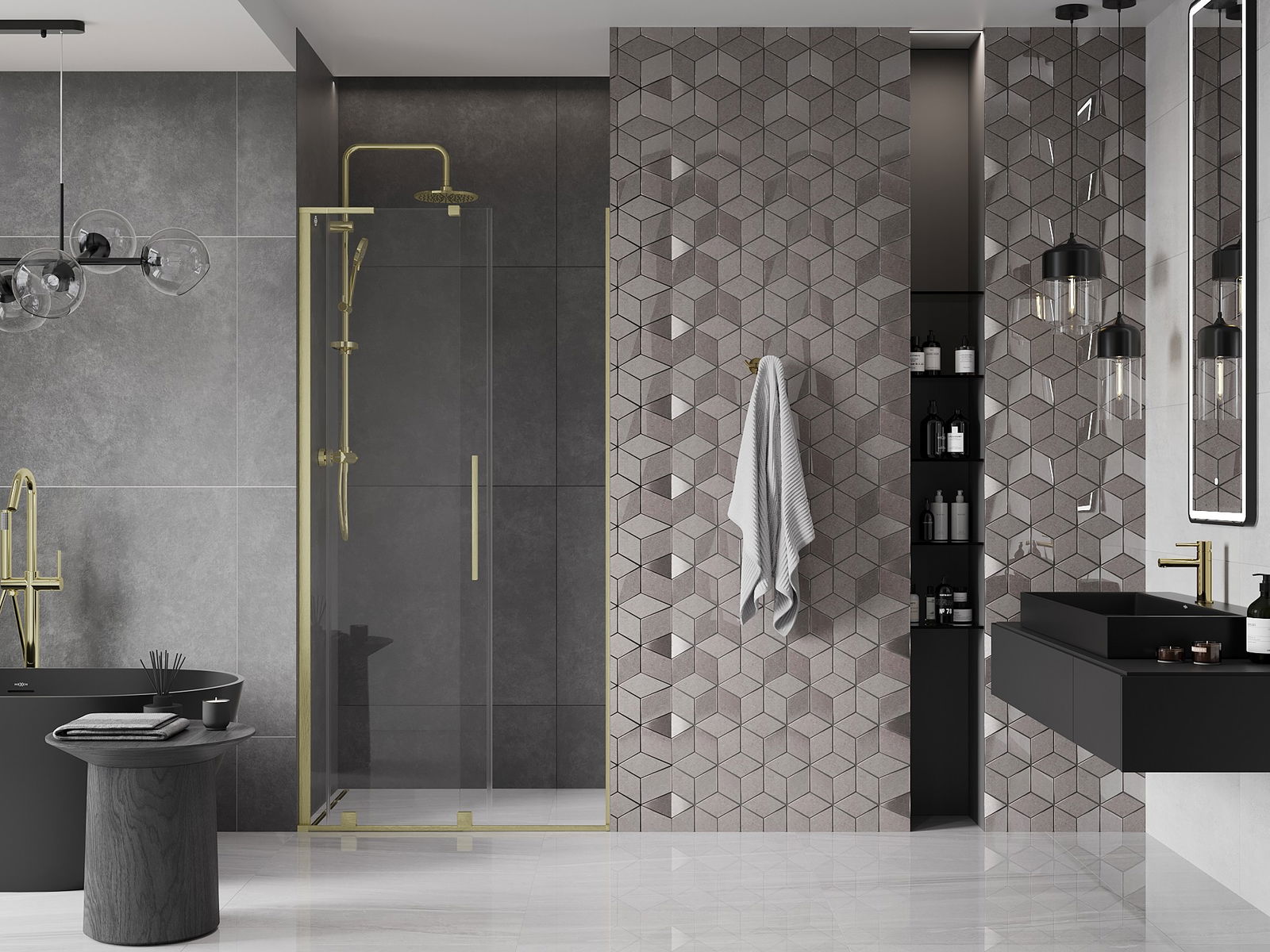 Mexen Velar L drzwi prysznicowe rozsuwane 100 cm, transparent, złote szczotkowane - 871-100-003-01-55