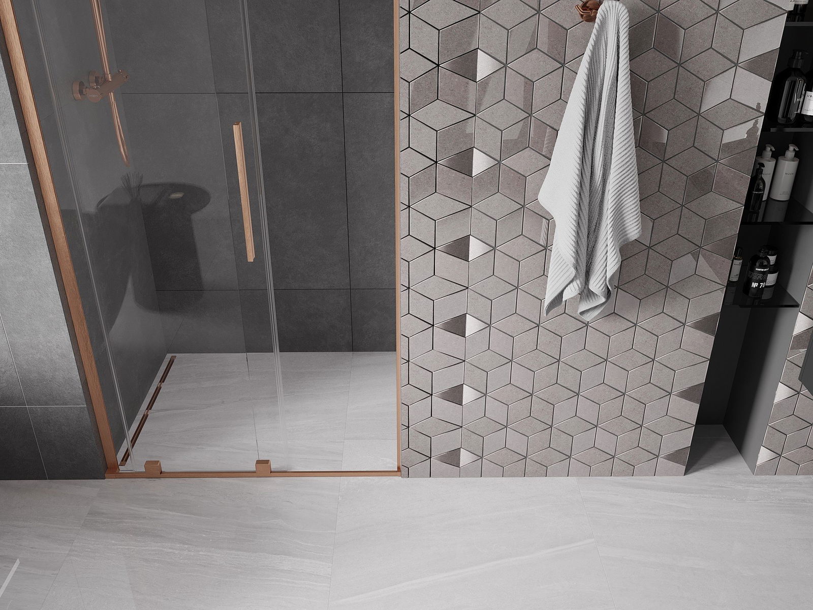 Mexen Velar L drzwi prysznicowe rozsuwane 120 cm, transparent, miedź szczotkowana - 871-120-003-01-65