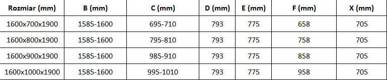 Rozmiar: 160x100 cm (drzwi 160 cm, ścianka 100 cm)
