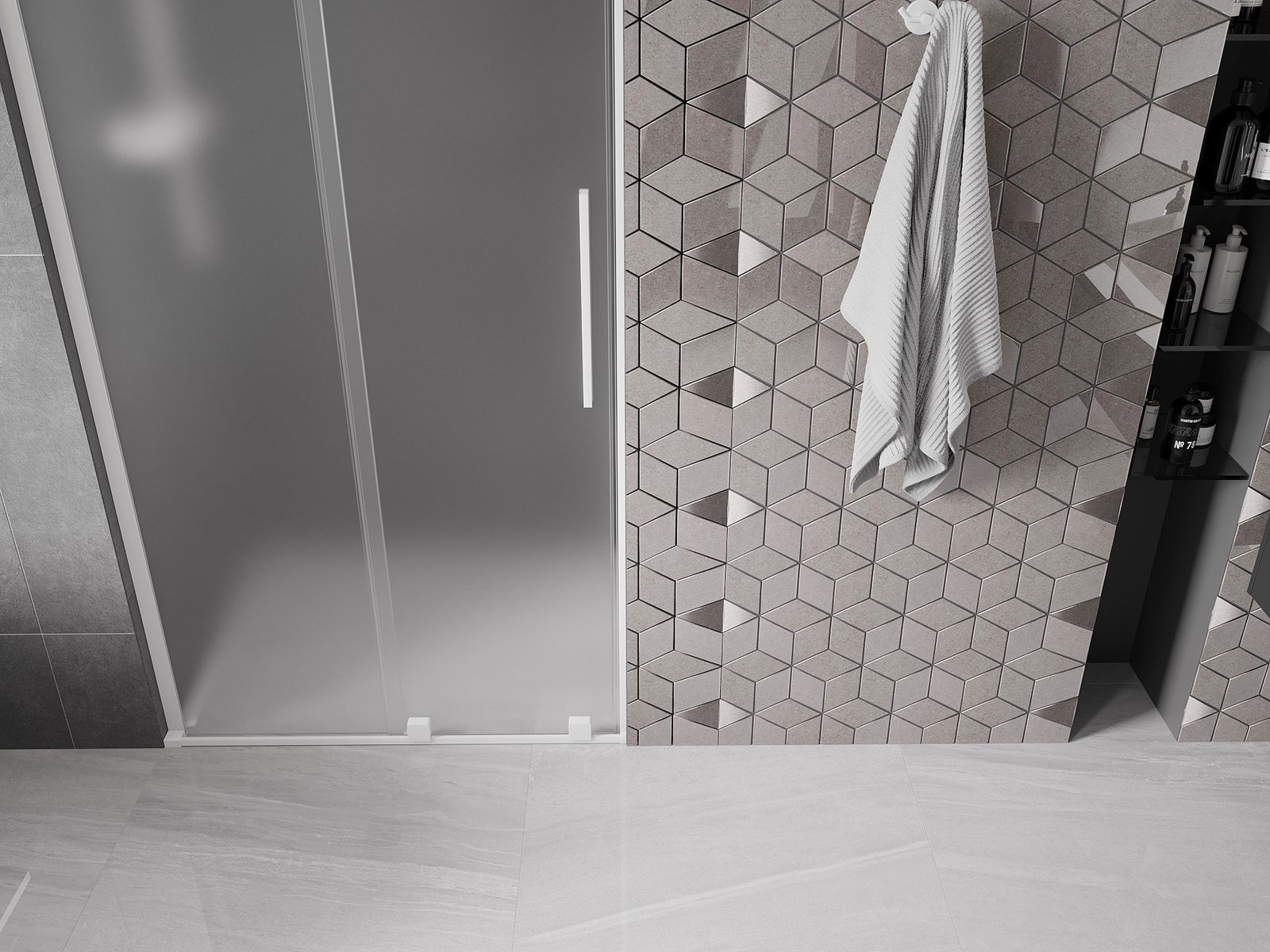 Mexen Velar L drzwi prysznicowe rozsuwane 90 cm, szron, białe - 871-090-003-31-20