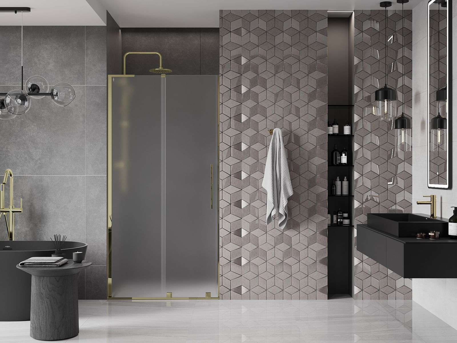 Mexen Velar L drzwi prysznicowe rozsuwane 120 cm, szron, złote - 871-120-003-31-50
