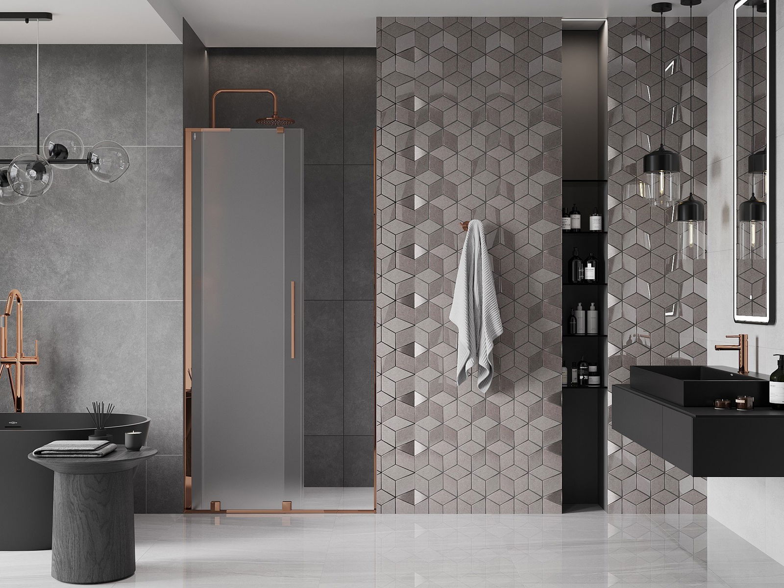 Mexen Velar L drzwi prysznicowe rozsuwane 100 cm, szron, różowe złoto - 871-100-003-31-60
