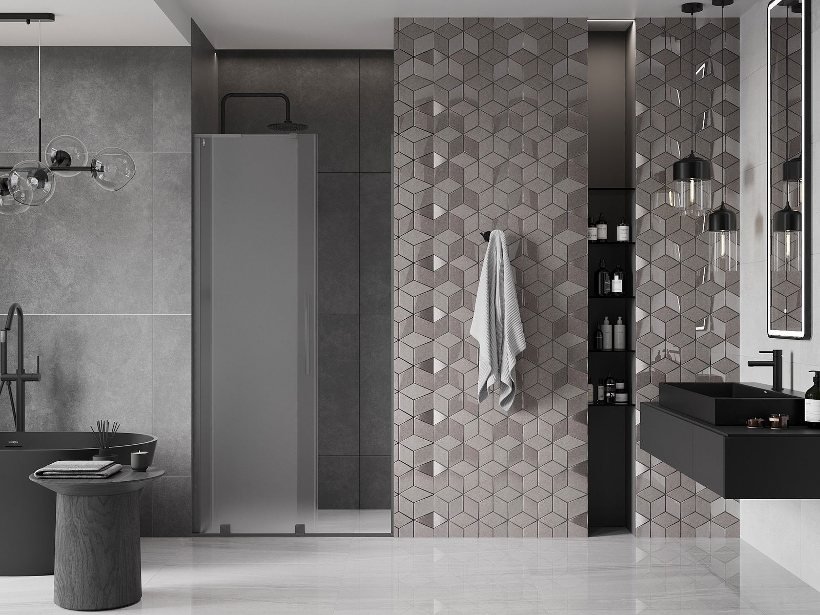 Mexen Velar L drzwi prysznicowe rozsuwane 90 cm, szron, gun metal - 871-090-003-31-95
